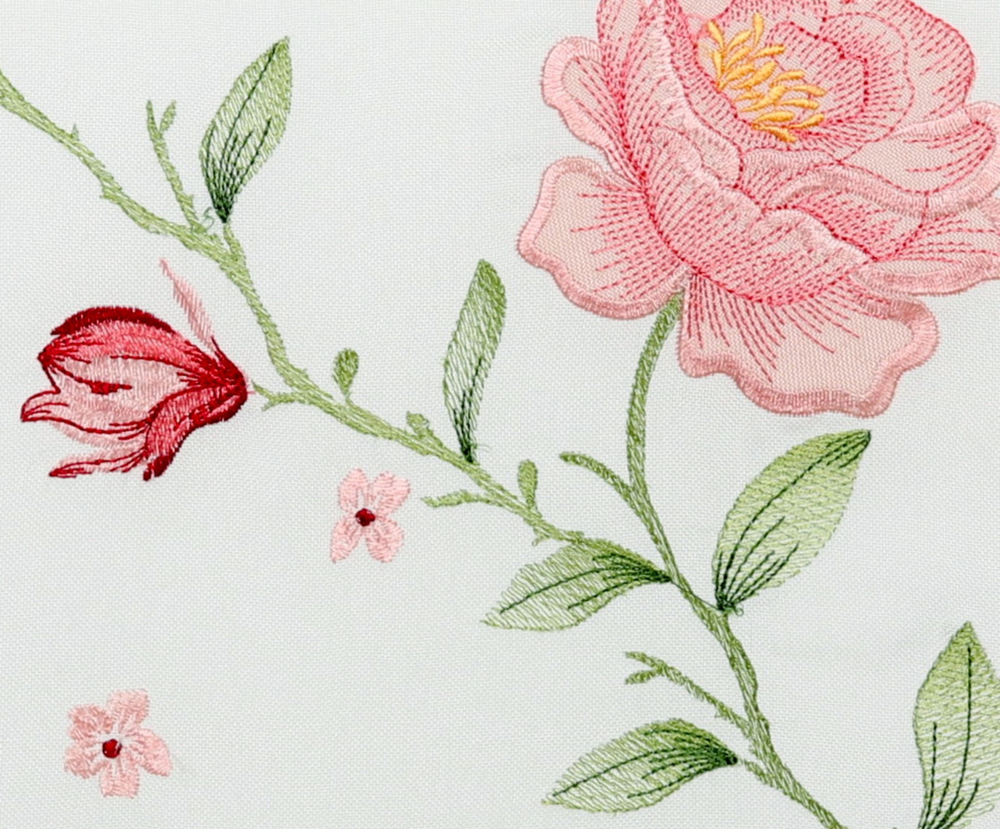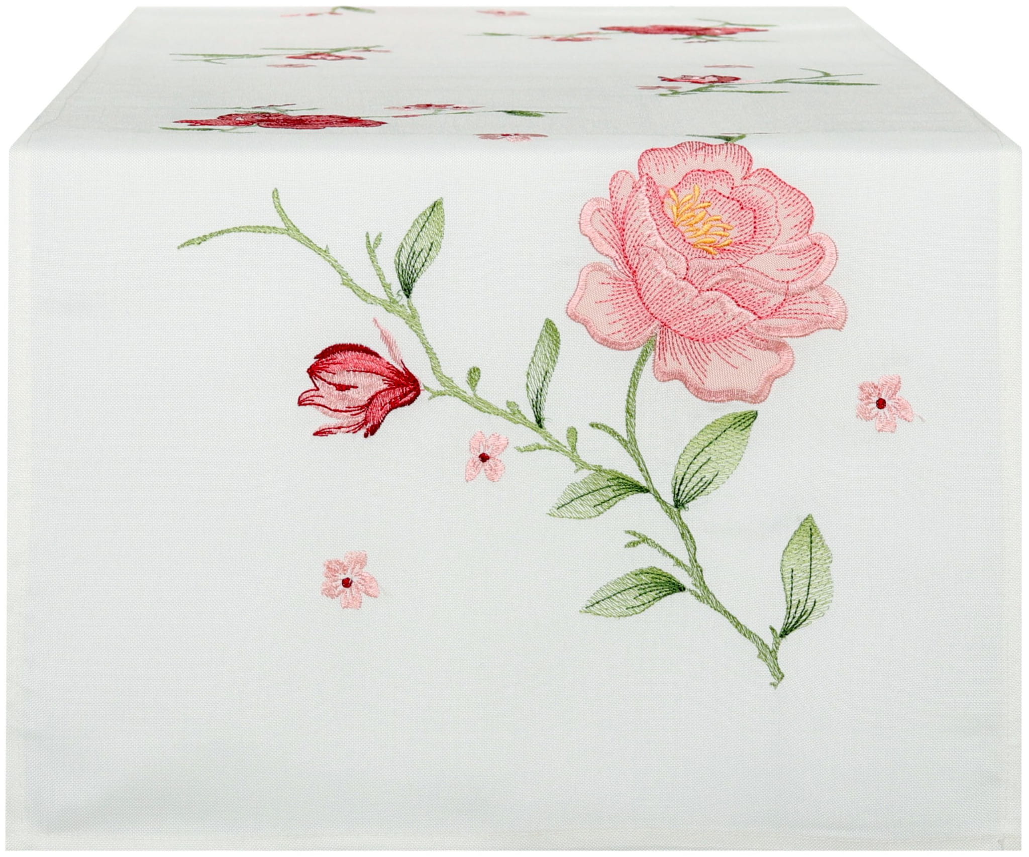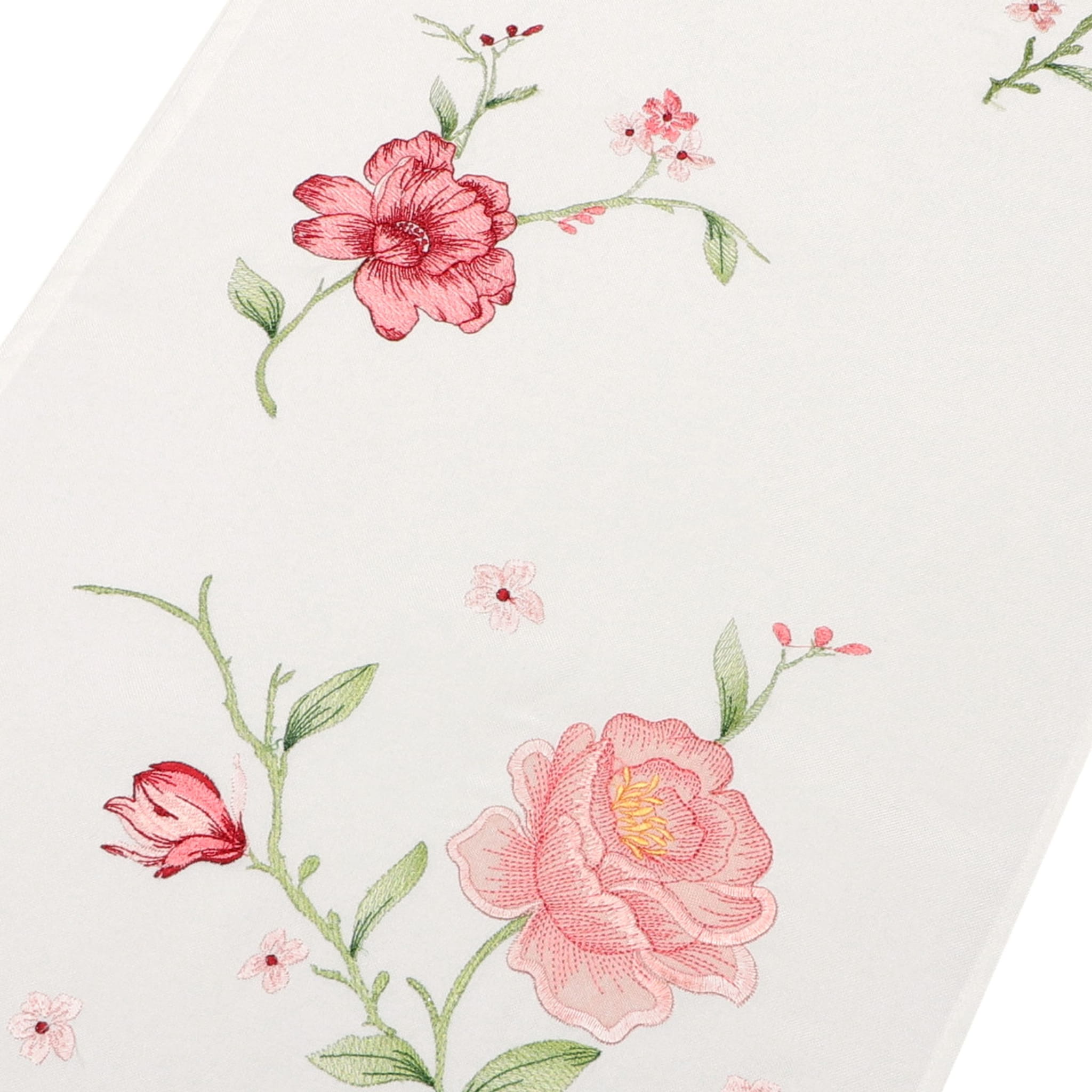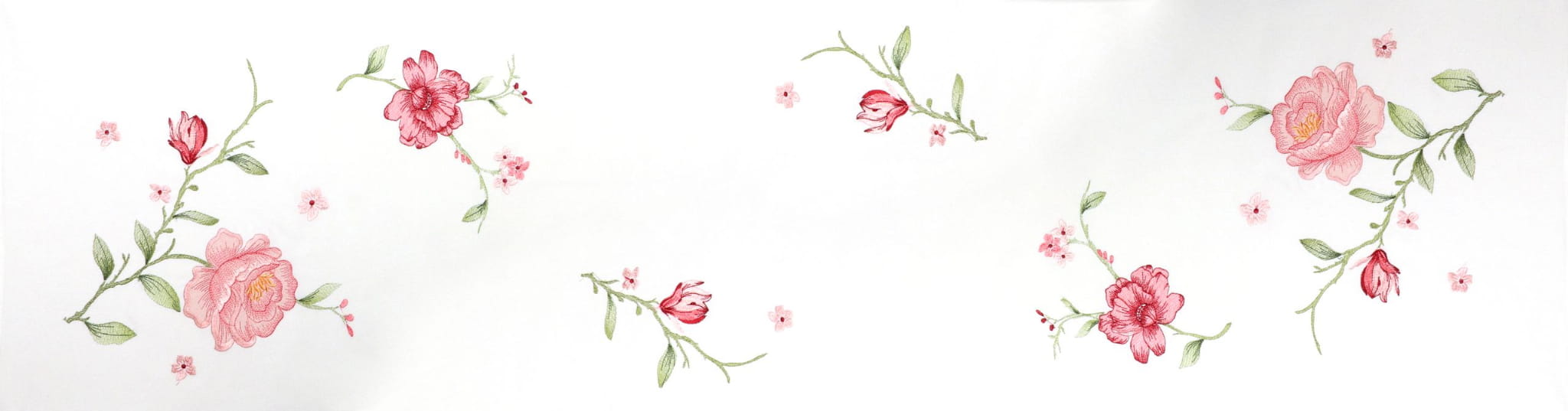 Bieżnik kwiatowy na stół w kolorze ecru z haftowanym wzorem róż.