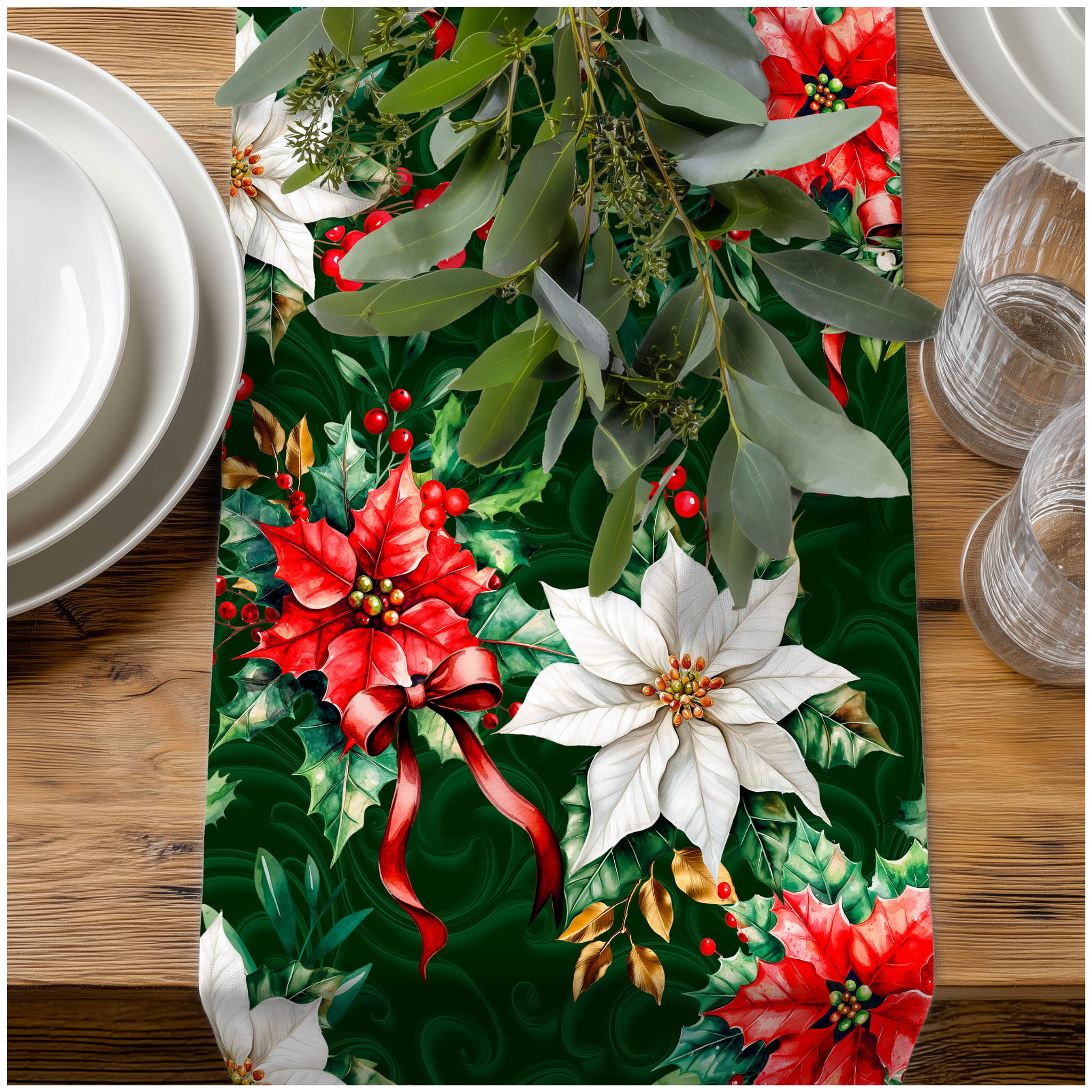 Bieżnik Świąteczny 40x160 Bieżnik na Stół Zielony Gwiazda Betlejemska 10764