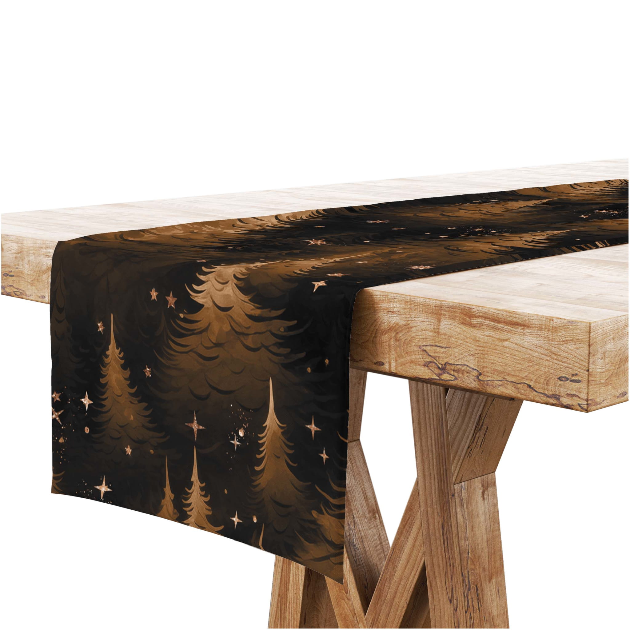 Bieżnik Świąteczny 40x180 Bieżnik na Stół Welur Czarny Złote Choinki 10013