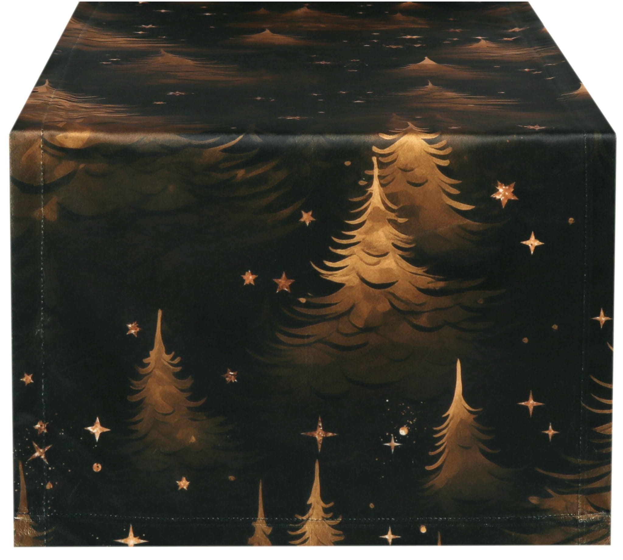 Bieżnik Świąteczny 40x240 Bieżnik na Stół Welur Czarny Złote Choinki 10013