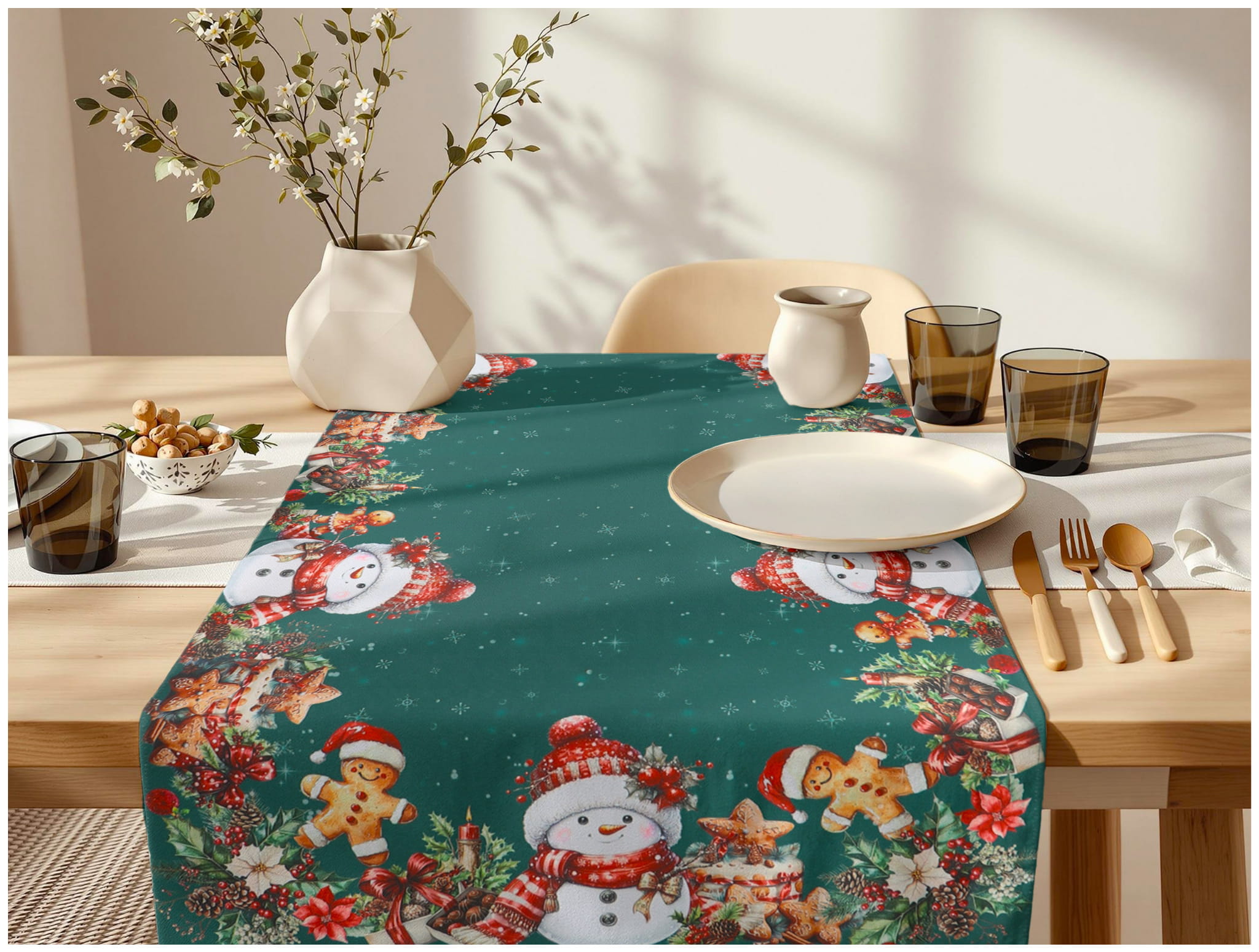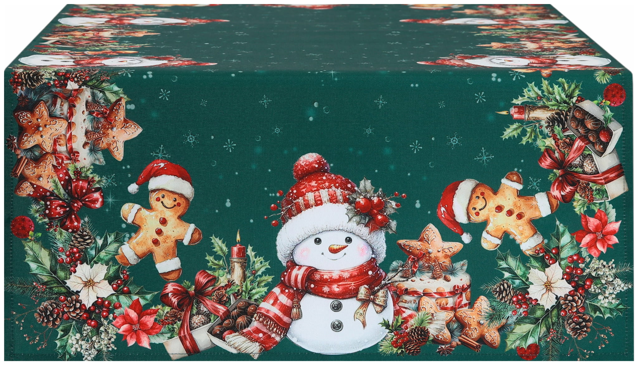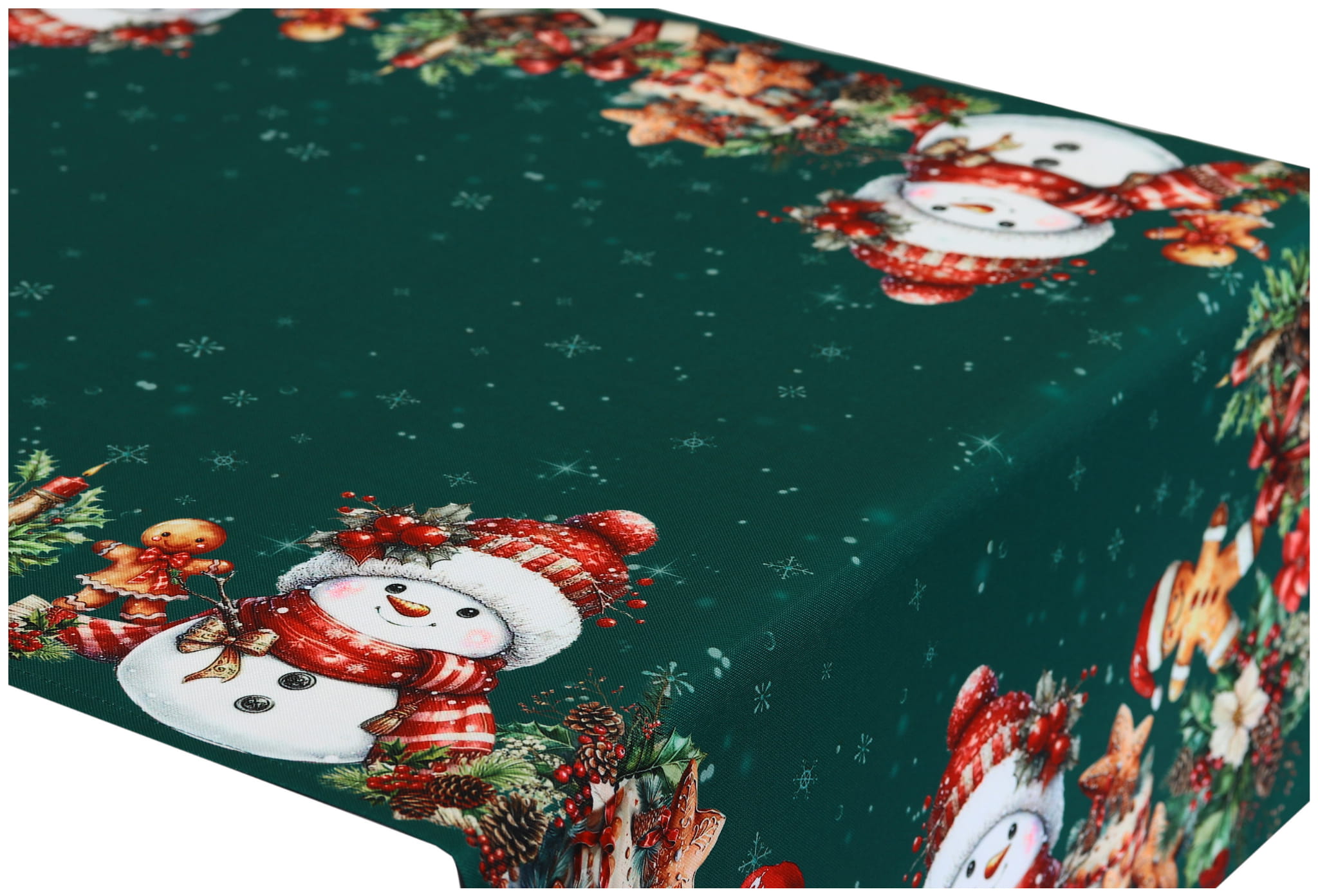 Bieżnik Świąteczny Zielony 60x120 Bieżniki na Stół Świąteczne Bałwanek