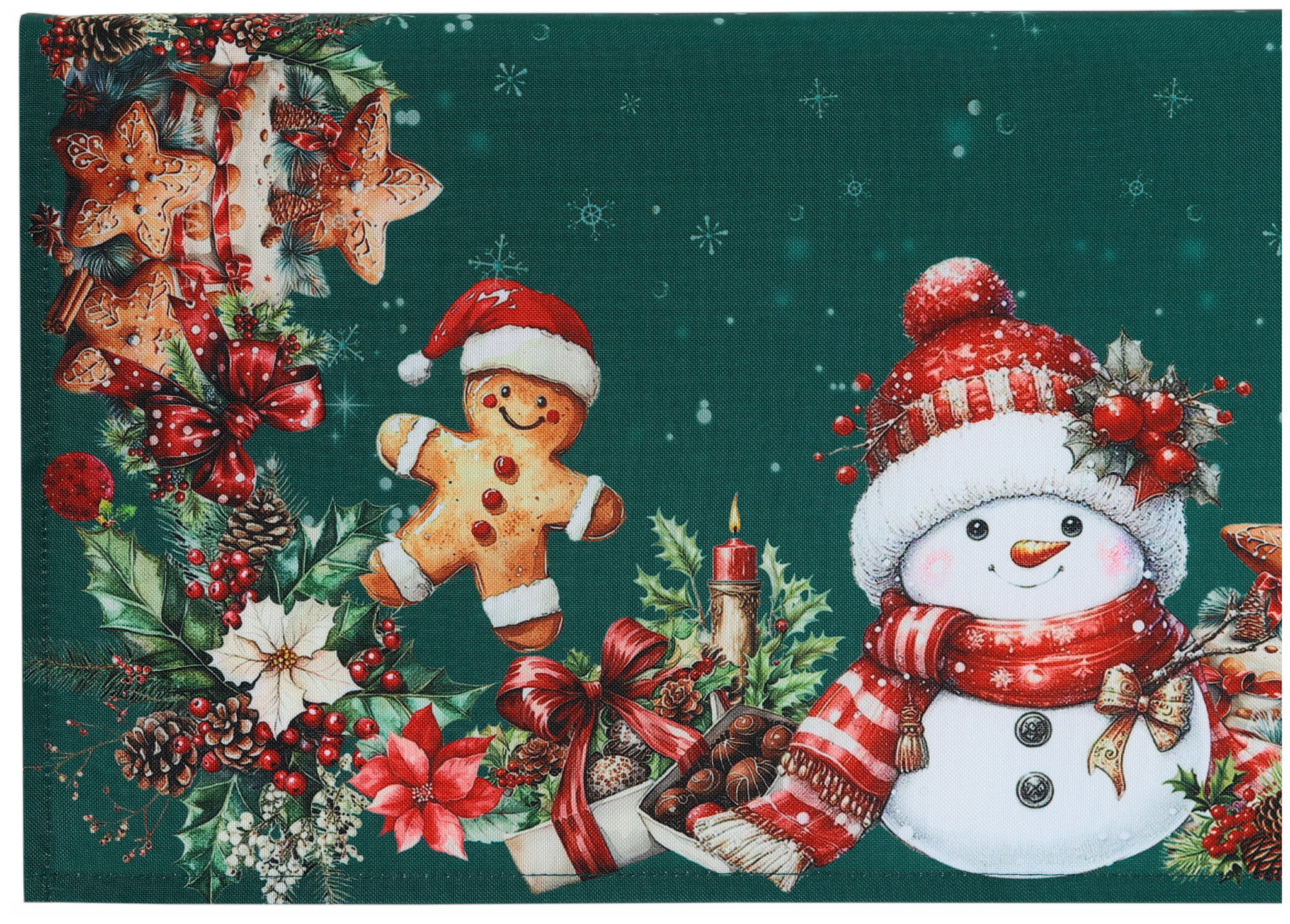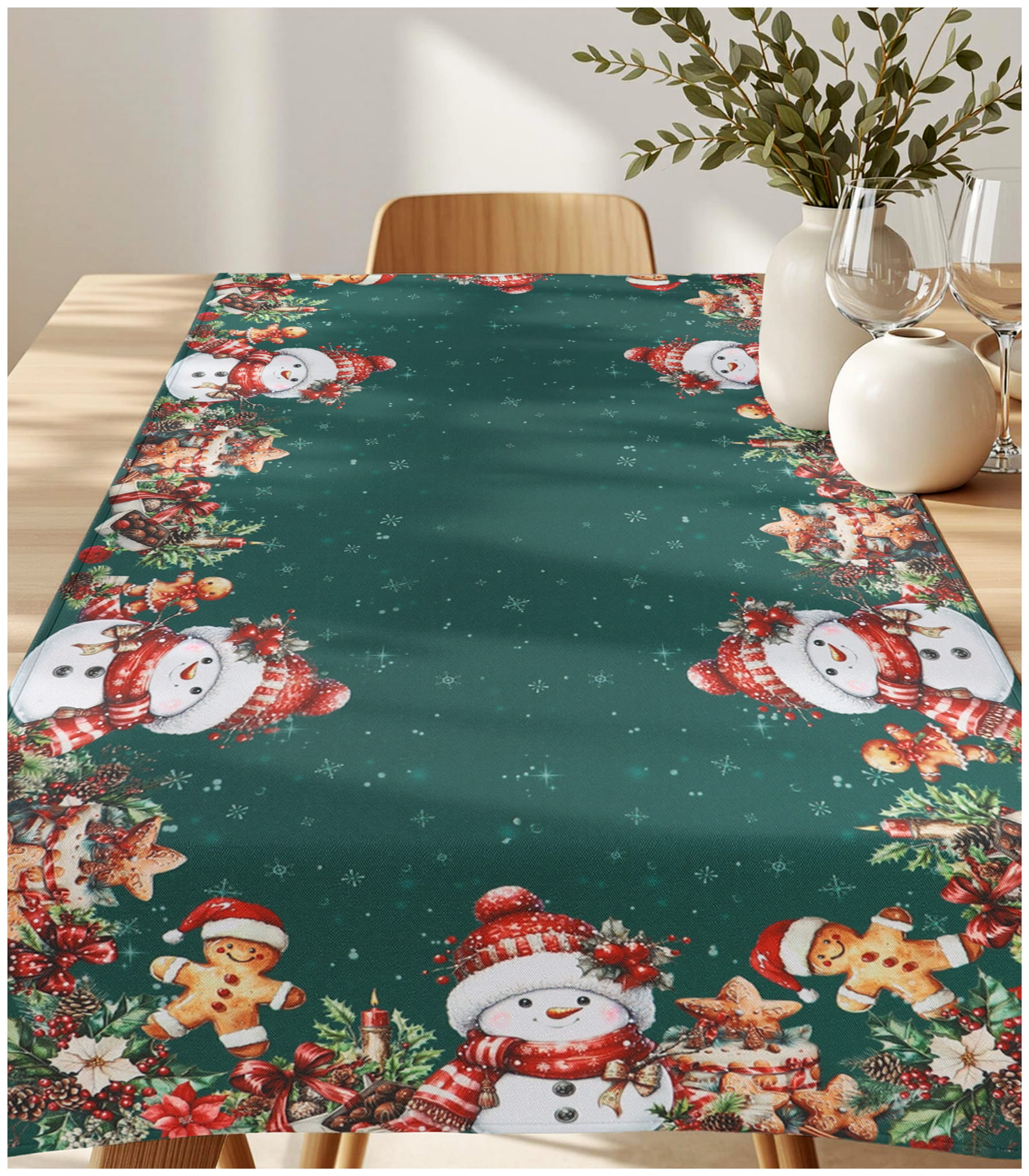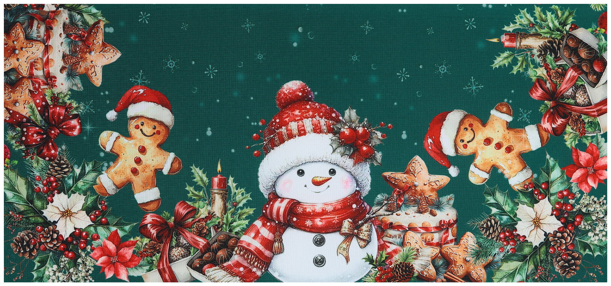 Bieżnik Świąteczny Zielony 60x120 Bieżniki na Stół Świąteczne Bałwanek