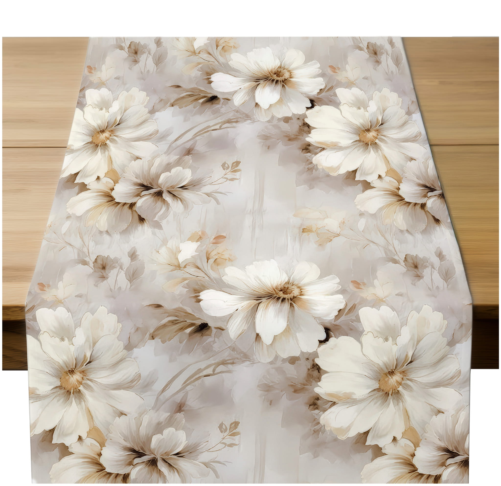 Bieżnik na Stół 40x100 Dekoracyjny Beżowy w Kwiaty 10822
