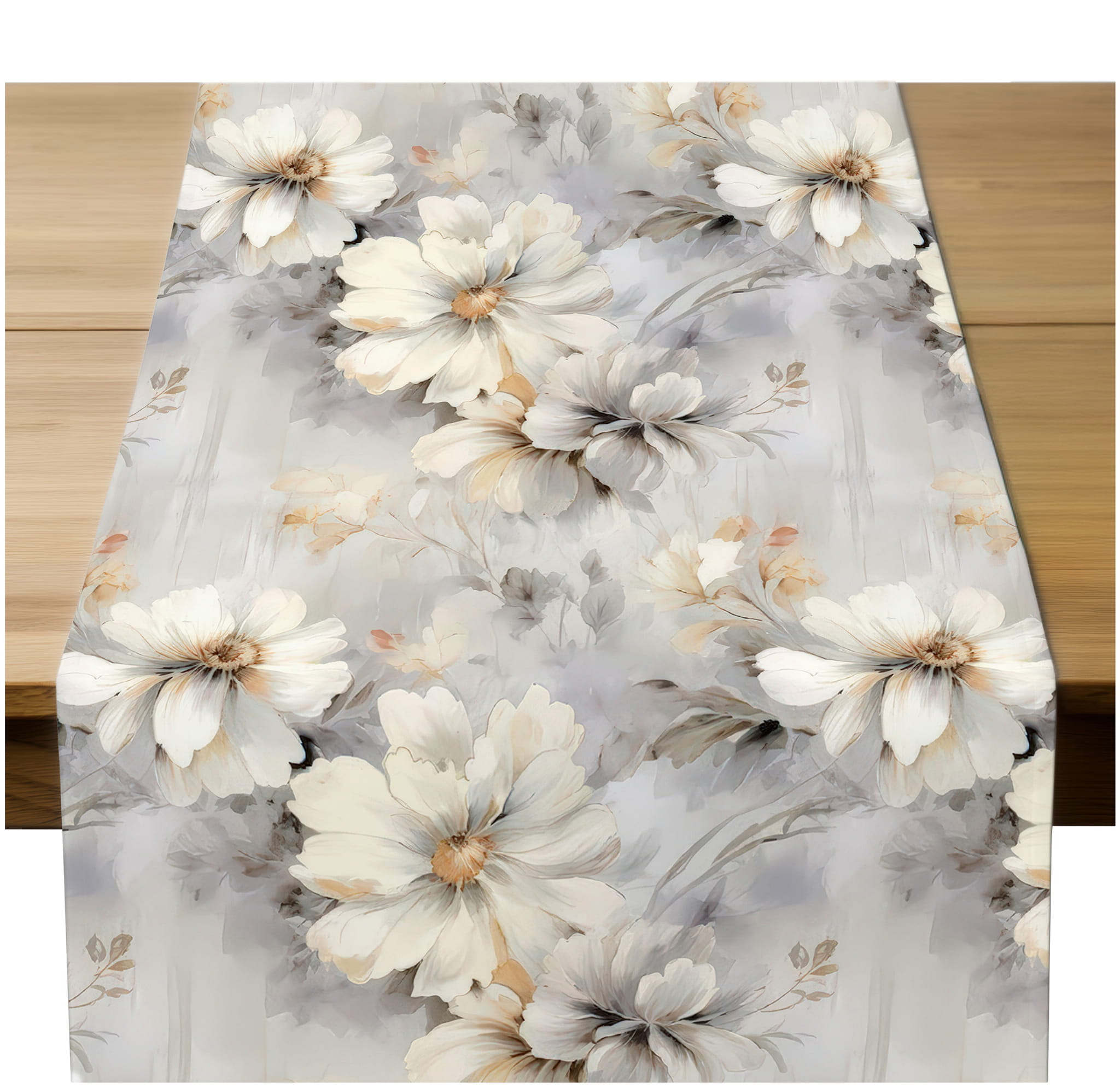 Bieżnik na Stół 40x140 Dekoracyjny Szary w Kwiaty 10760
