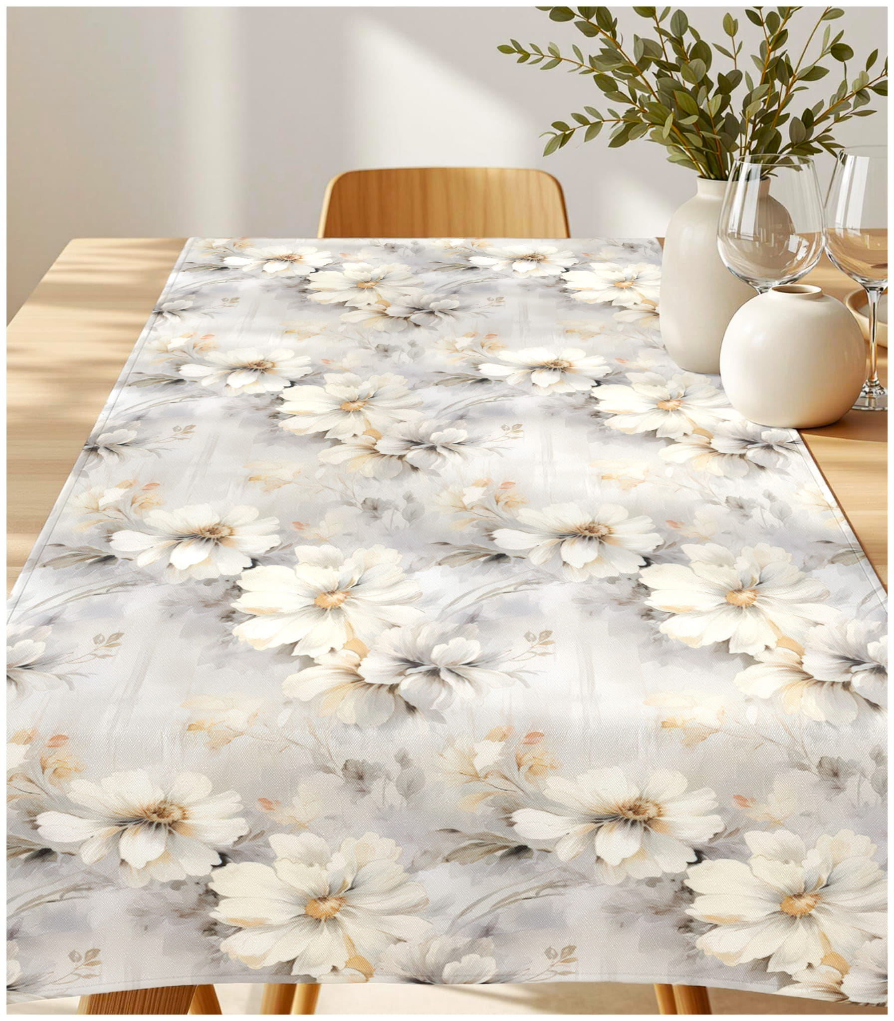 Bieżnik na Stół 40x160 Dekoracyjny Szary w Kwiaty 10760