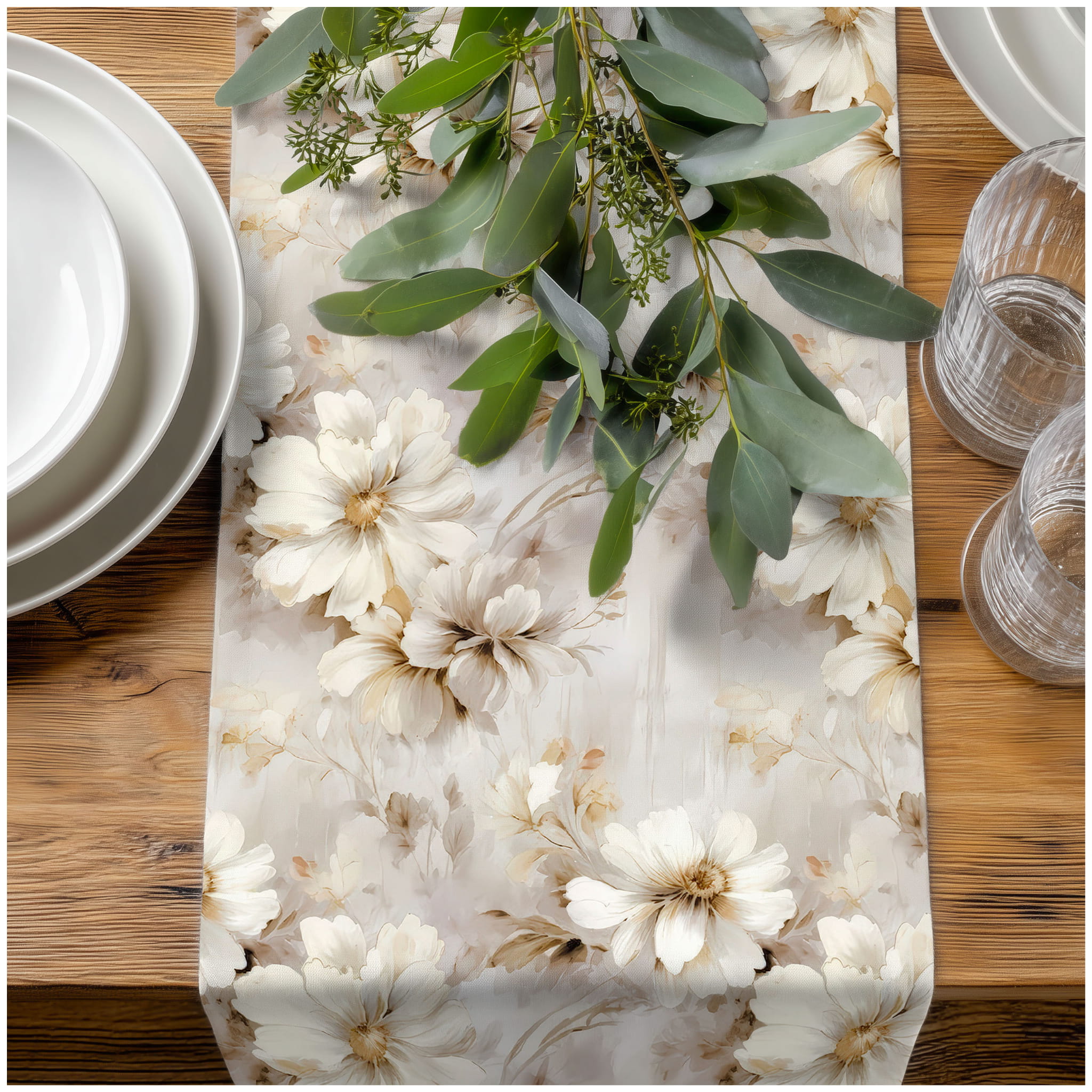 Bieżnik na Stół 40x180 Dekoracyjny Beżowy w Kwiaty 10822