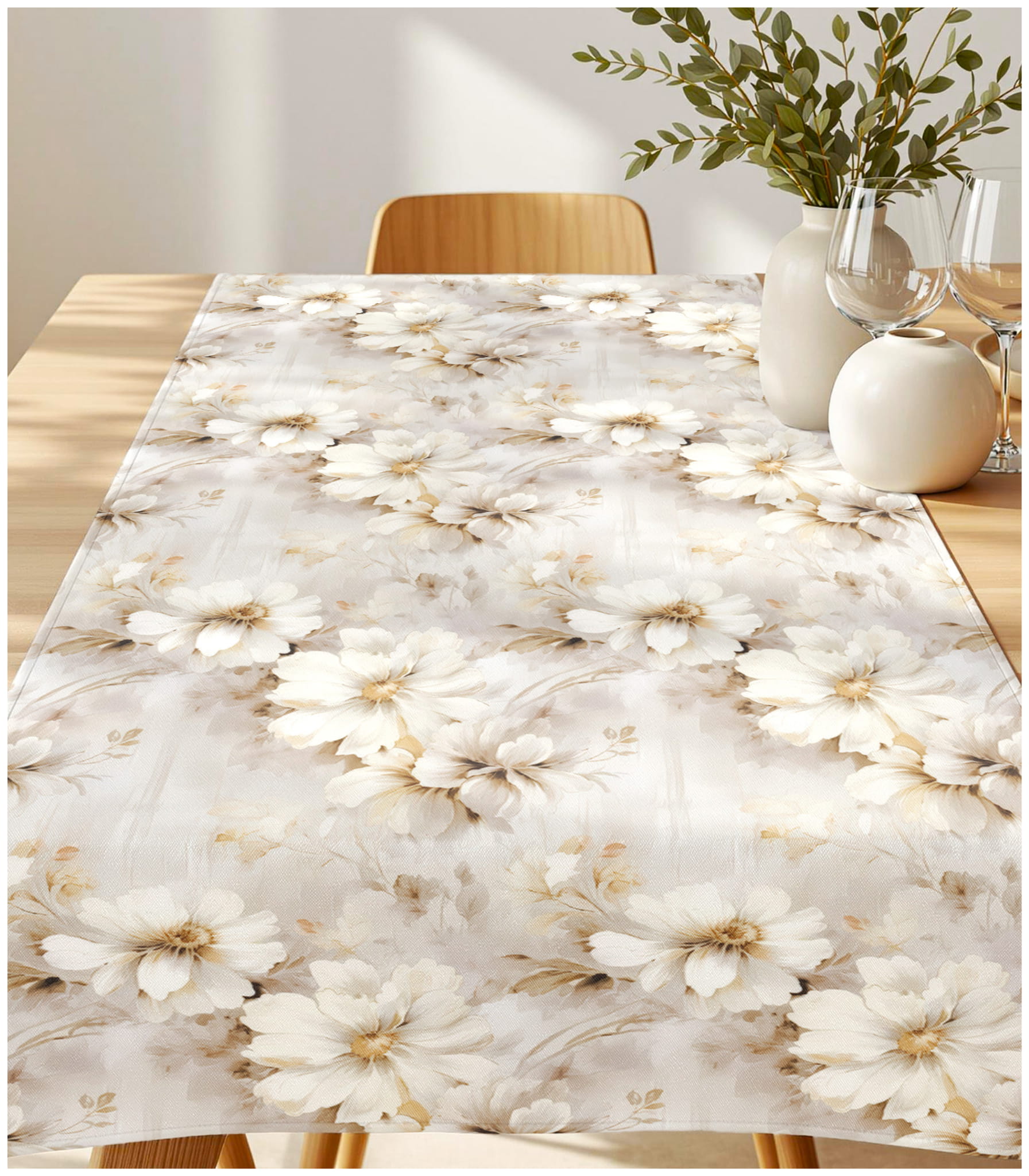 Bieżnik na Stół 40x200 Dekoracyjny Beżowy w Kwiaty 10822