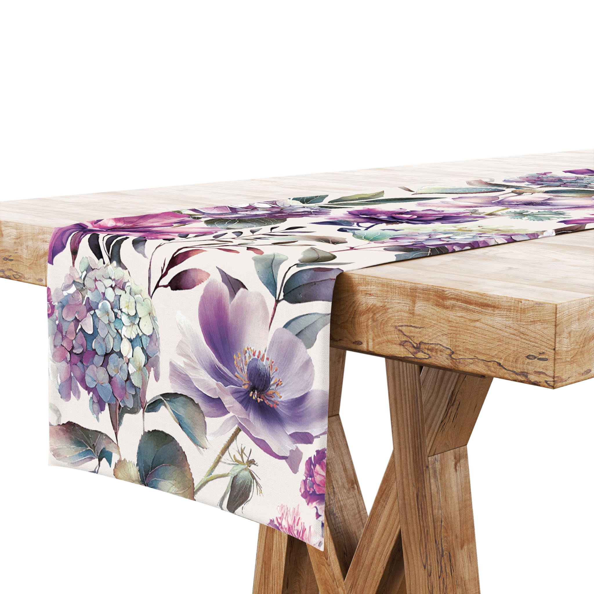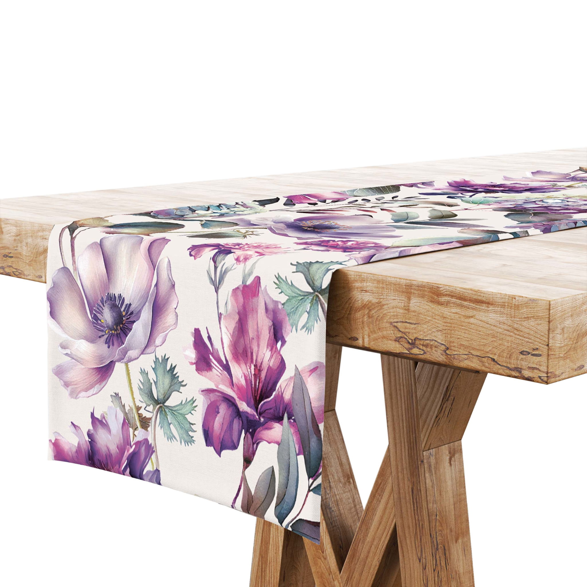 Bieżnik na Stół 40x200 Dekoracyjny Prostokątny Bieżniki Kwiaty Fiolet 9872