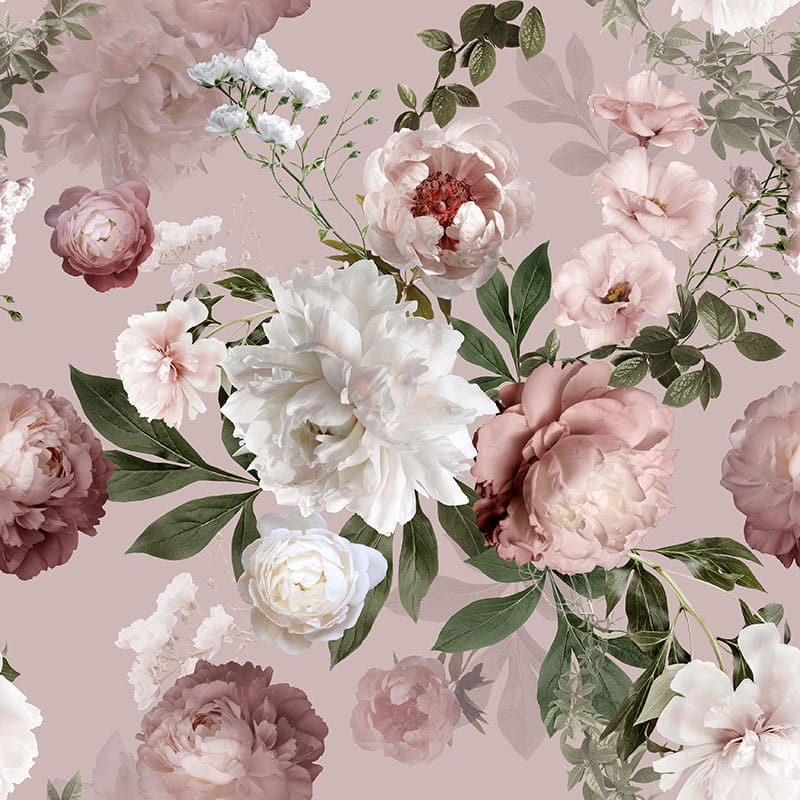 ✔️ Wzór: piwonie na jasno różowym tle