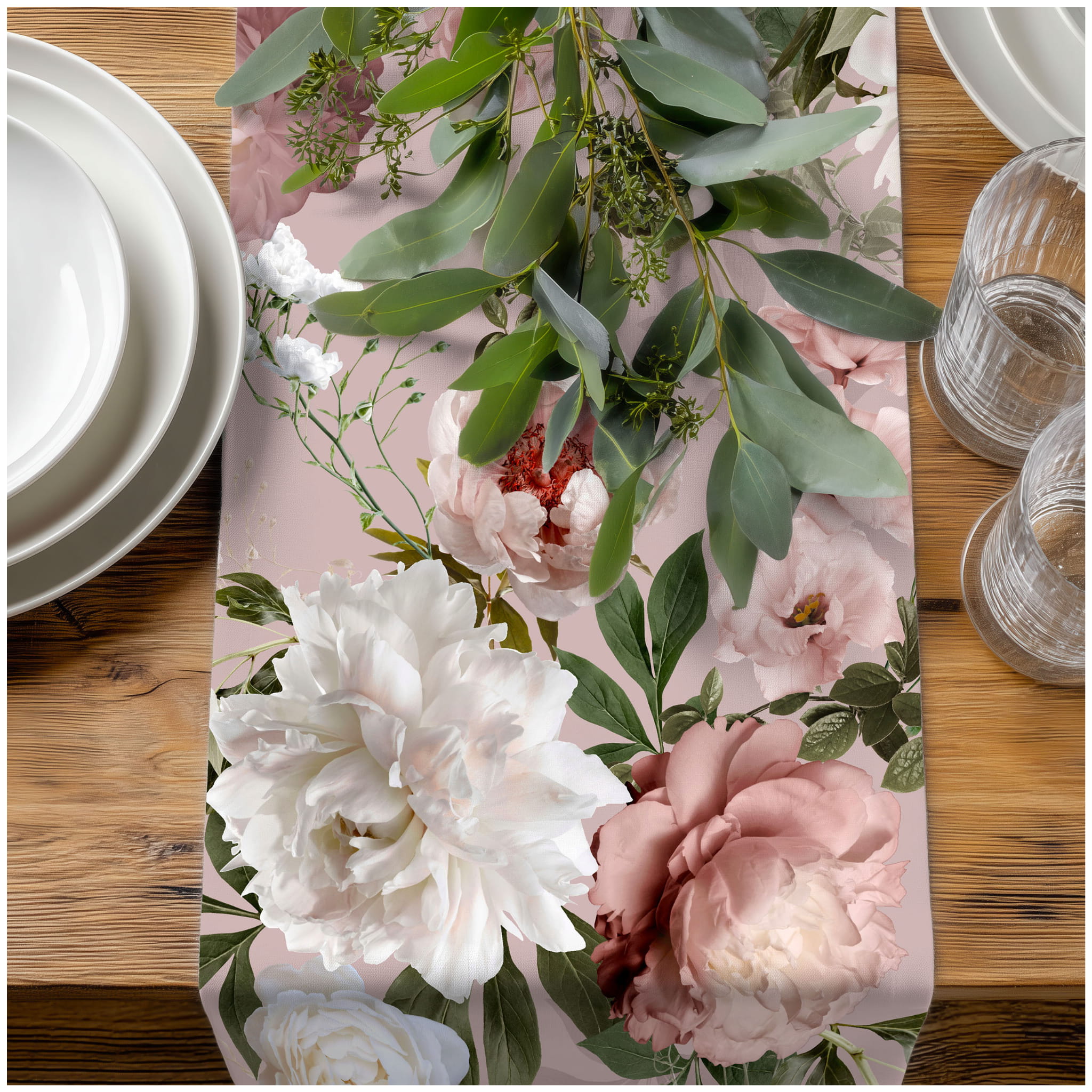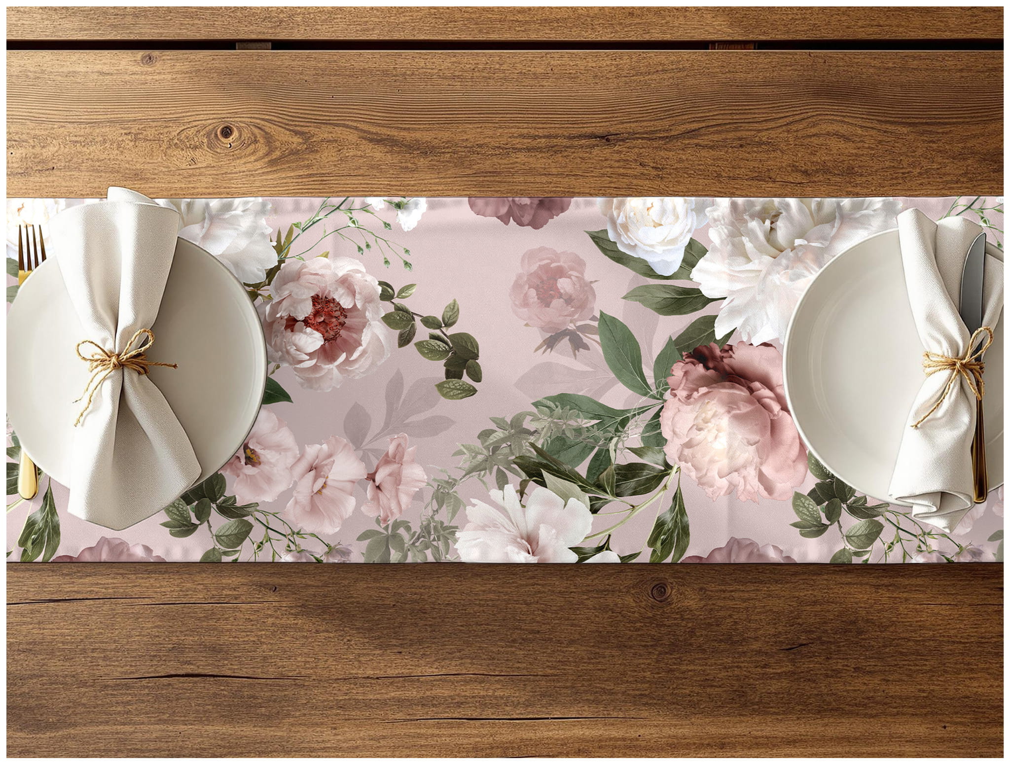 Najczęściej bieżnik powinien być o 40-60 cm dłuższy niż stół, aby po obu stronach tworzył eleganckie zwisy (ok. 20-30 cm).