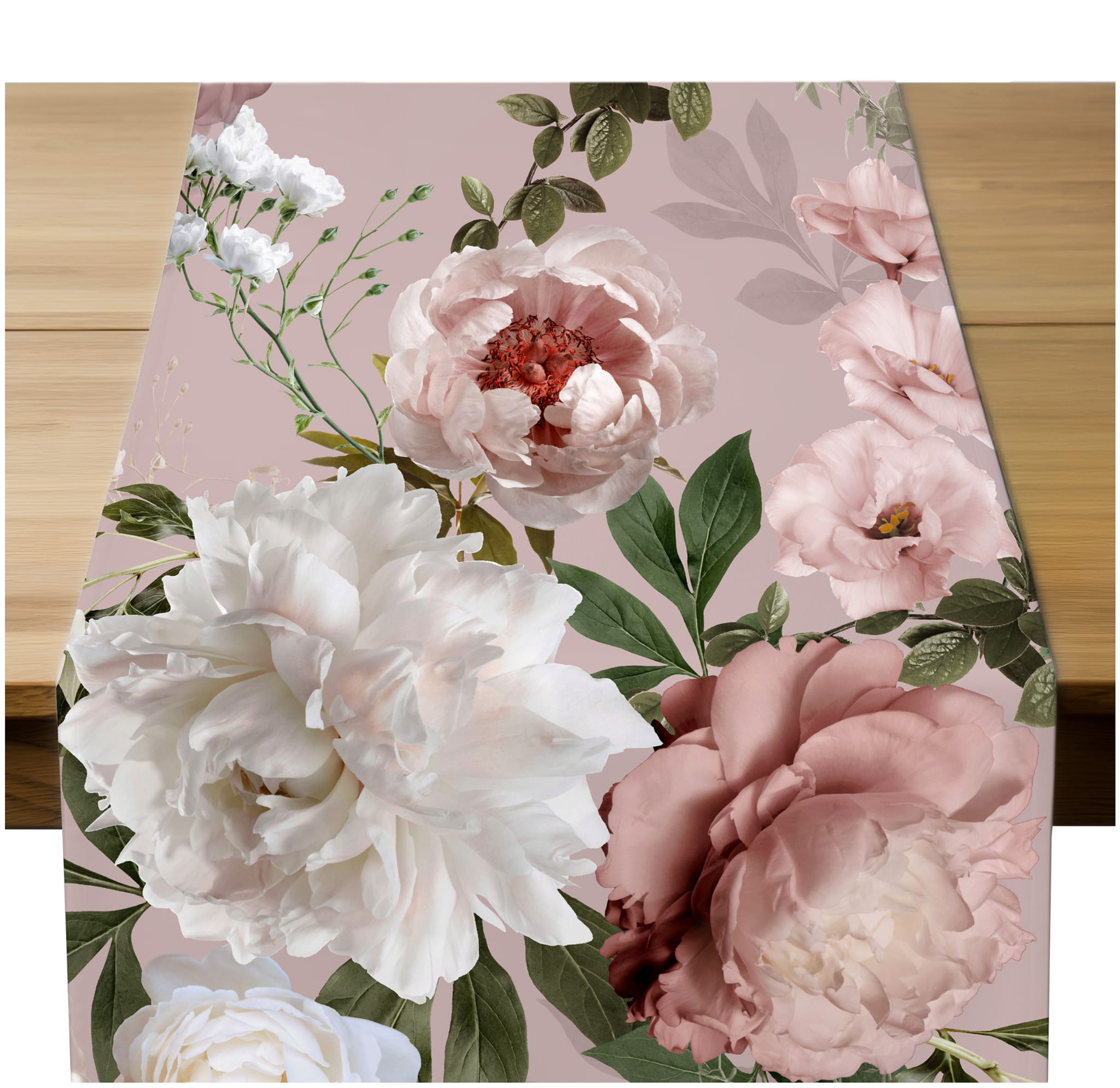 Bieżnik na Stół Długi Matowy 40x220 Dekoracyjny w Kwiaty Różowy 5964