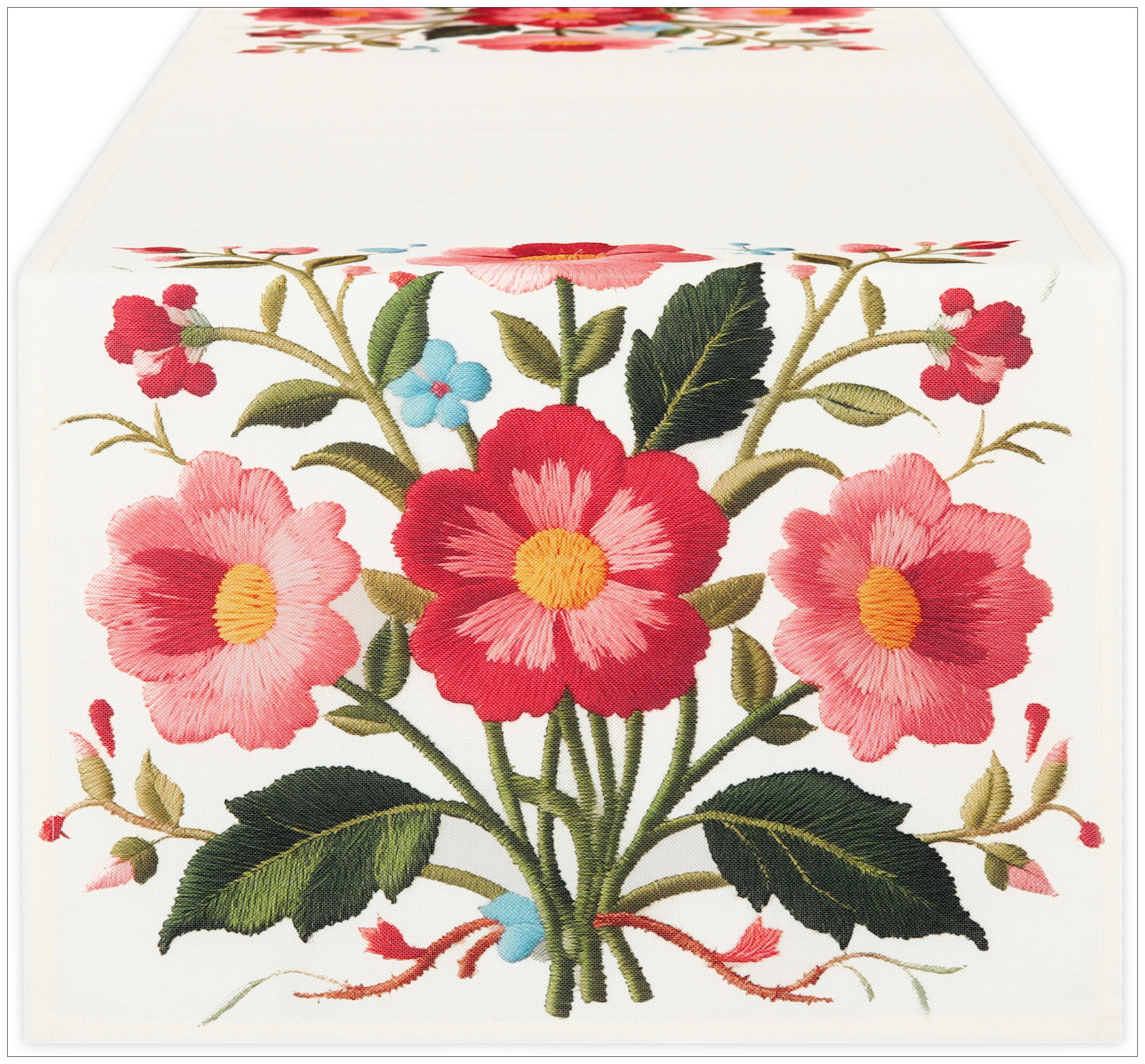 Bieżnik na Stół Wiosenny 40x140 Bieżnik w Kwiaty jak Haftowany