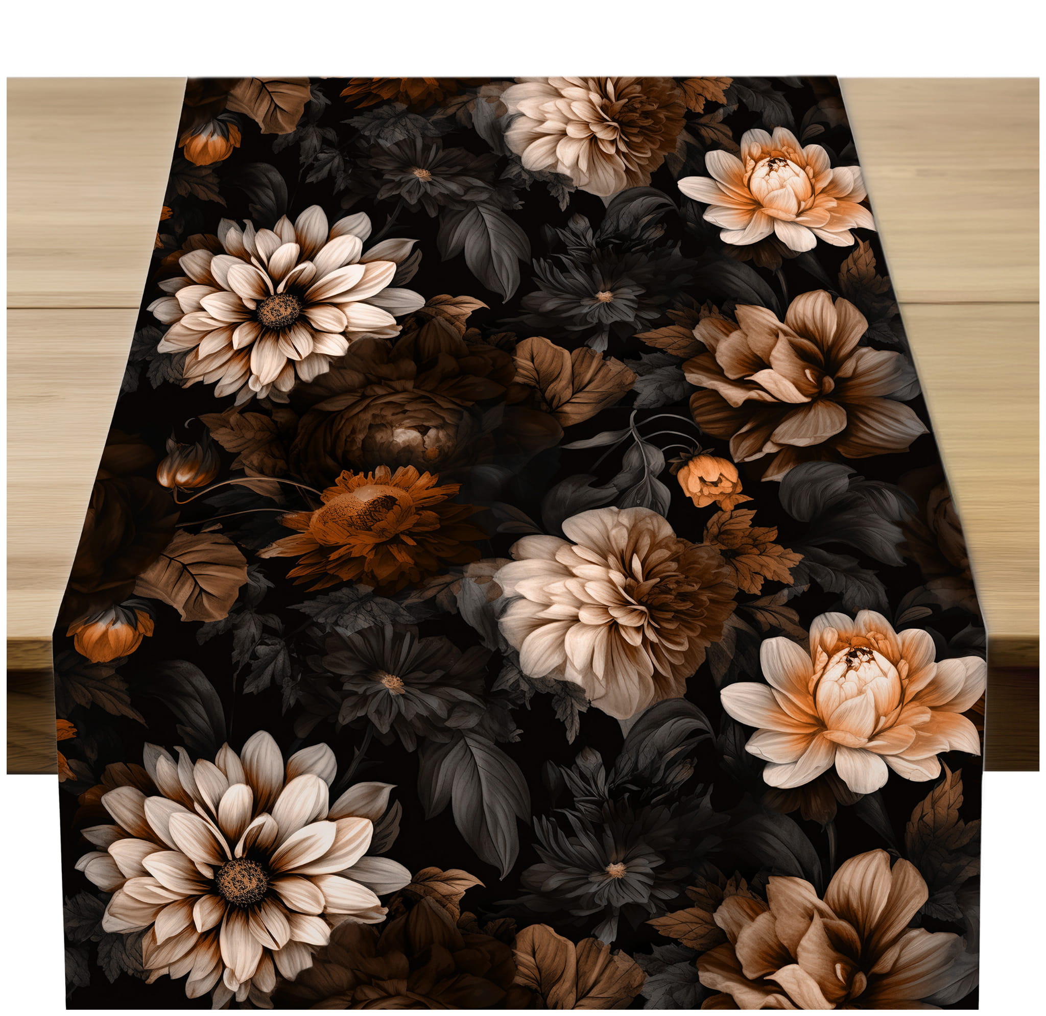 Bieżnik w Kwiaty 40x220 Bieżnik Dekoracyjny Kwiaty Brąz 10870