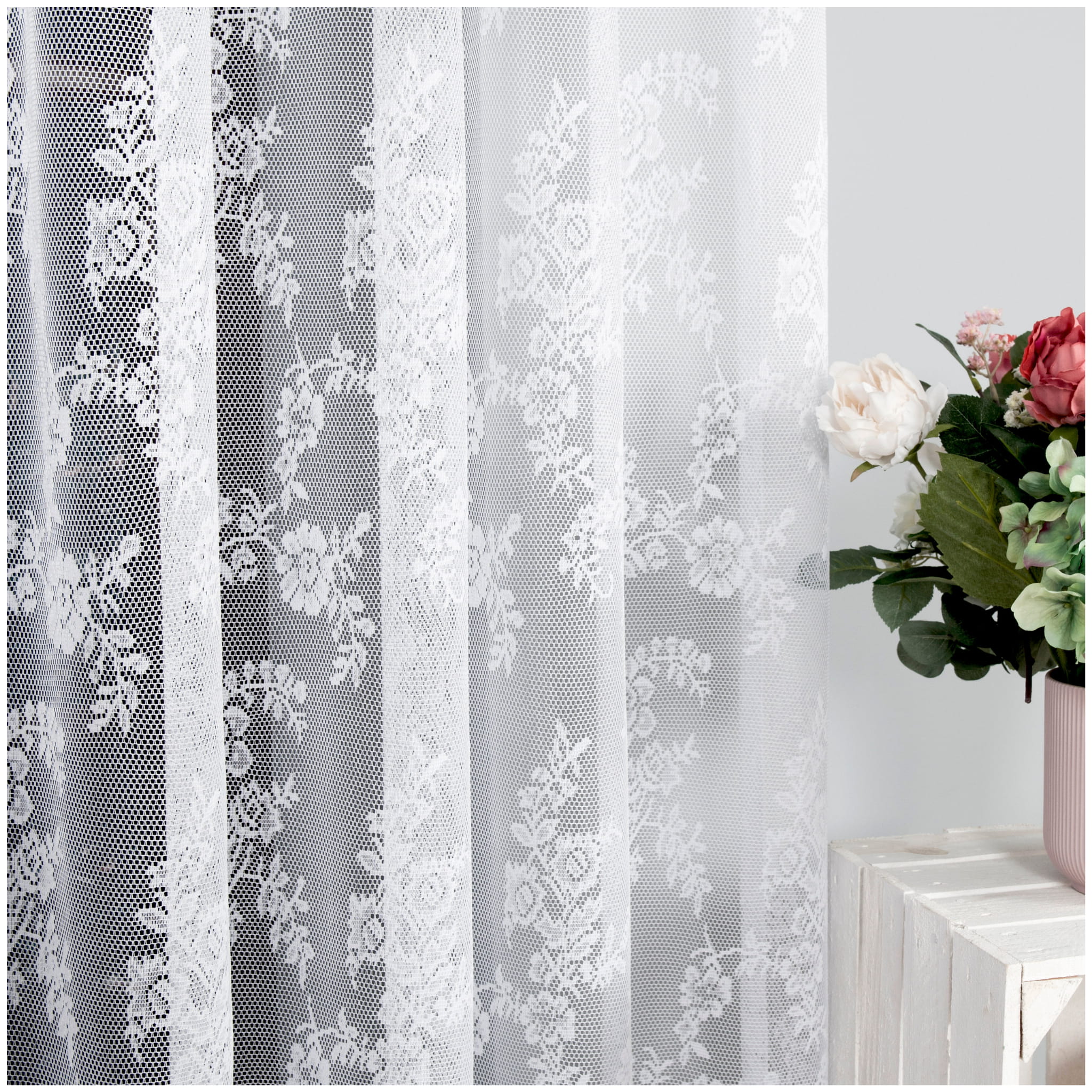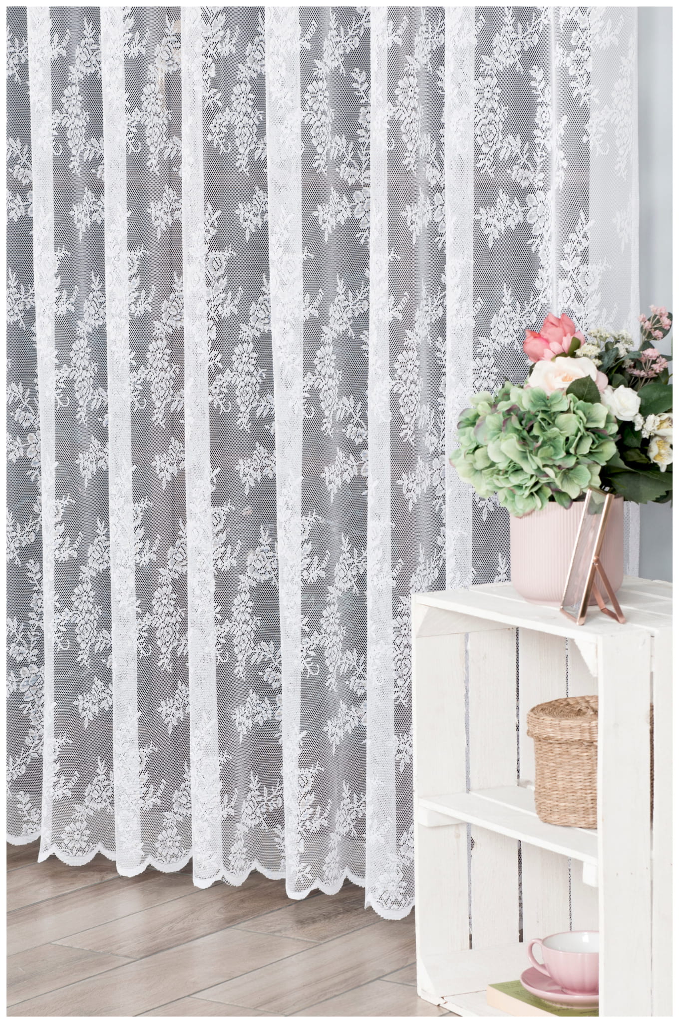 Firana Długa 500x250 Firanka do Pokoju na Żabki Biała Kwiaty 10913