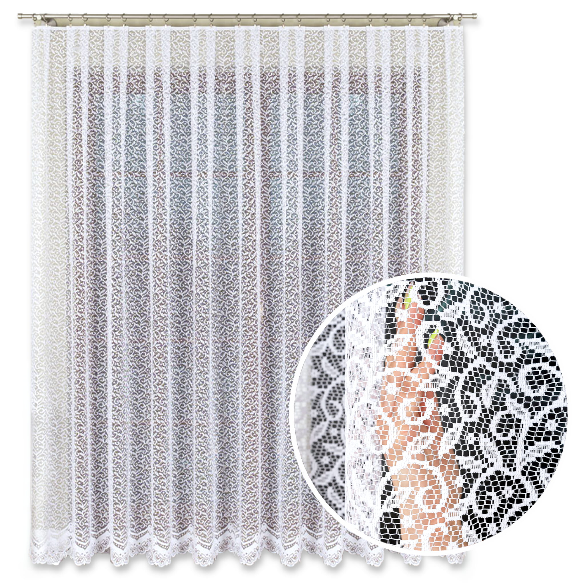 Firana Gotowa 300x250 Długa Firanka do Pokoju Żabki Biała Wzór po Całości 10942