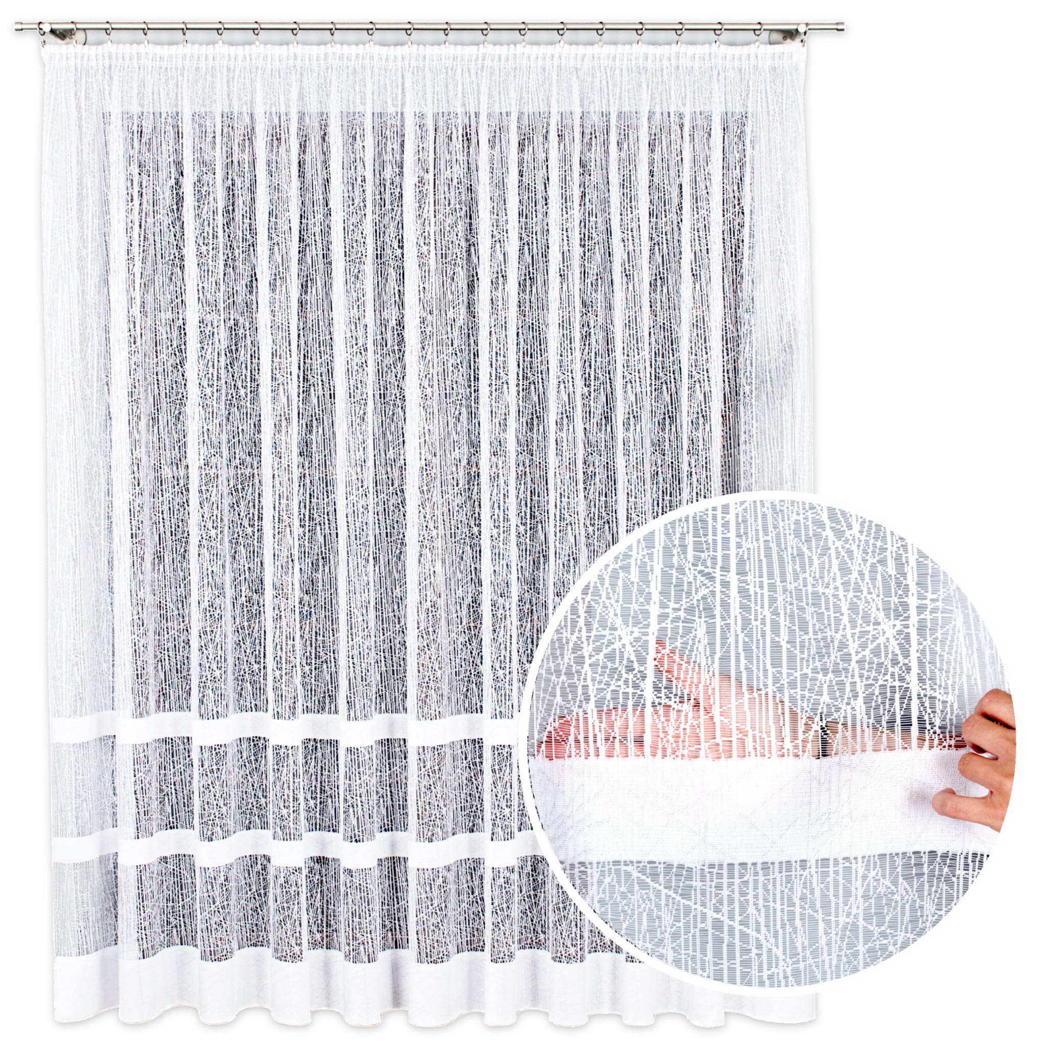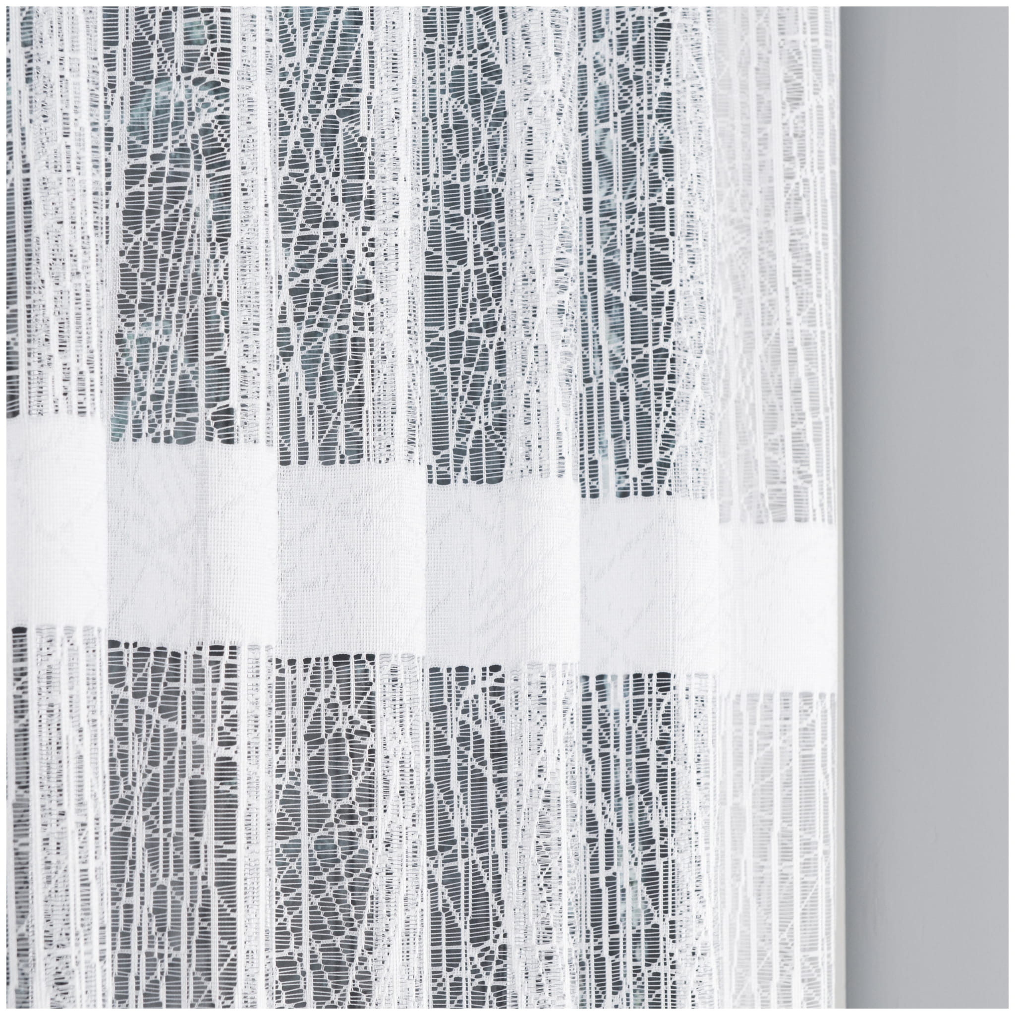 Firana Gotowa 350x250 Firanka na Żabki do Salonu Biała Pasy 10898