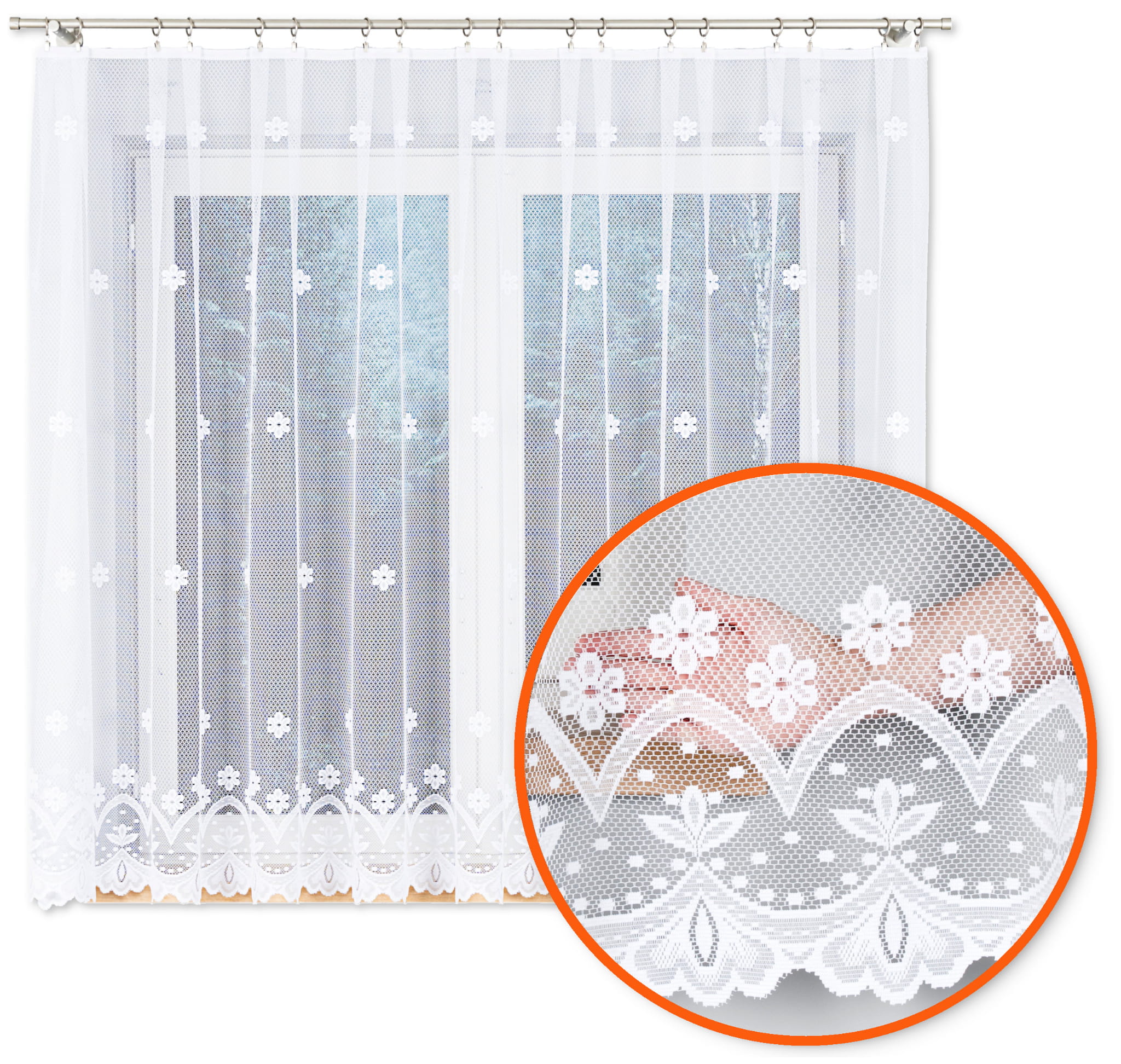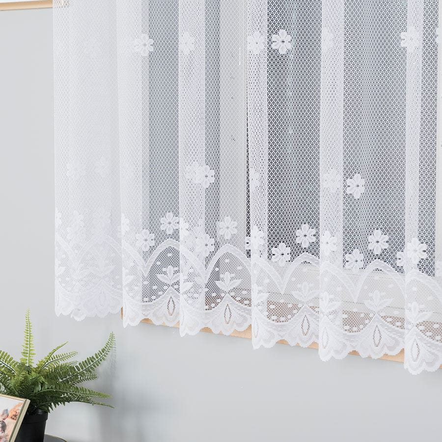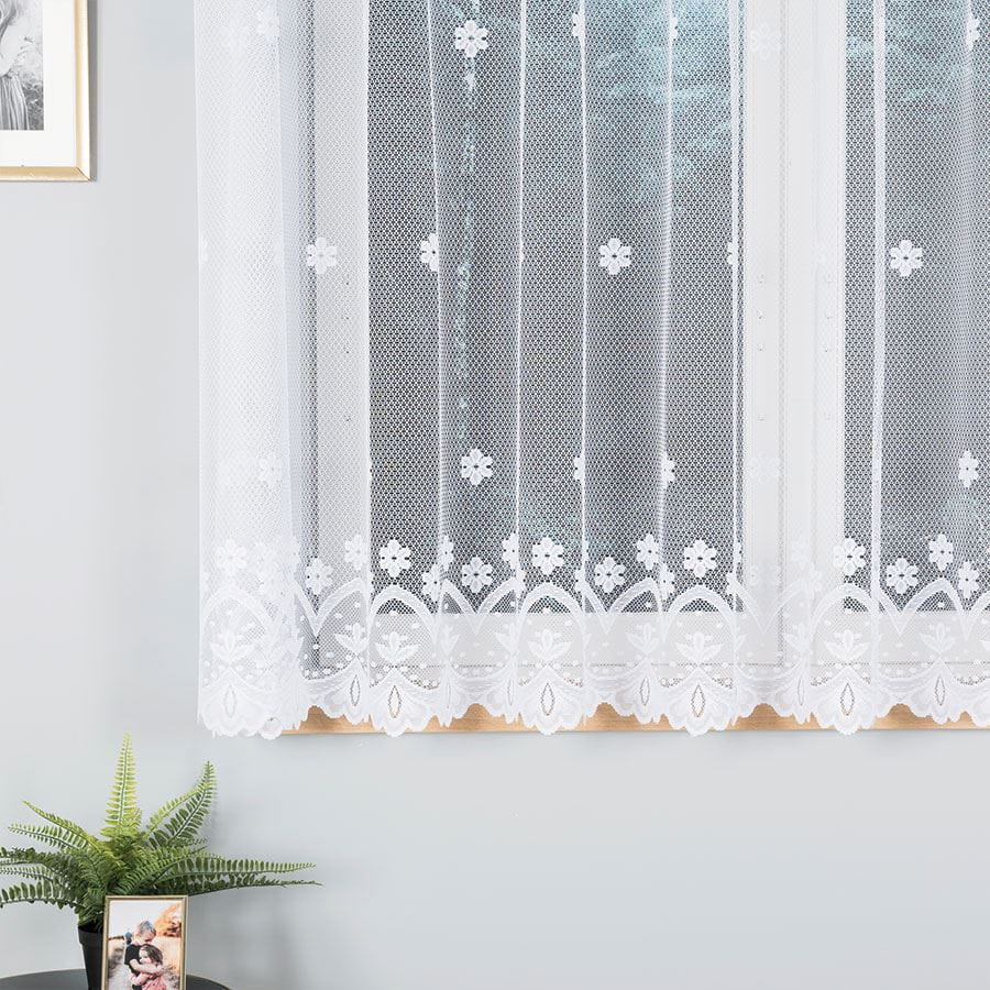 Firana na Metry 150cm Firanka Żakardowa Krótka Biała Kwiaty KO