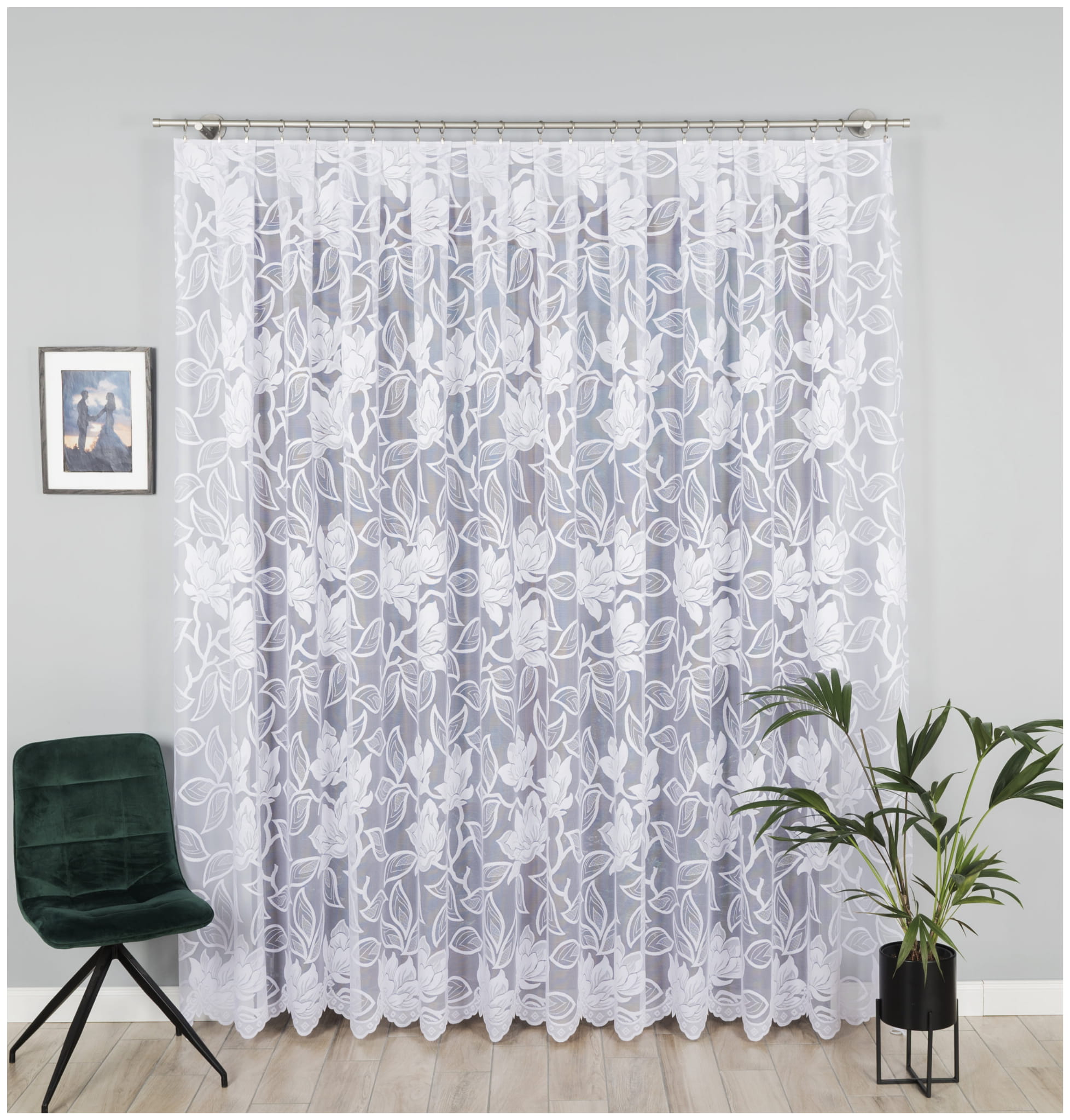 Firana na Metry Długa 250cm Firanka w Kwiaty Duży Wzór po Całości