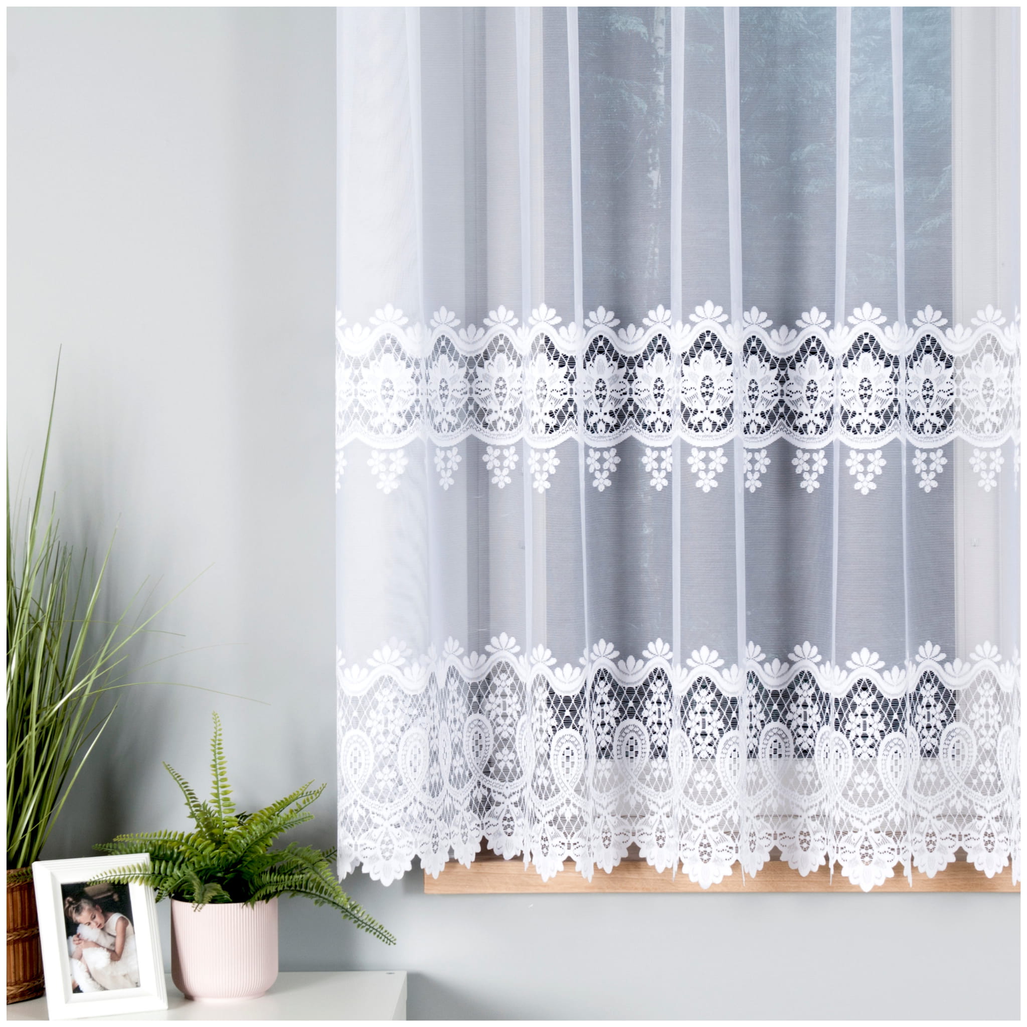 - firana nie wymaga prasowania - wystarczy wilgotną zawiesić w oknie