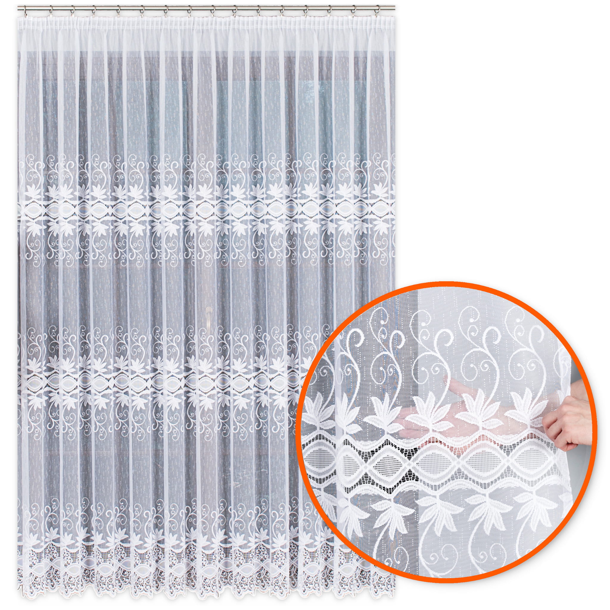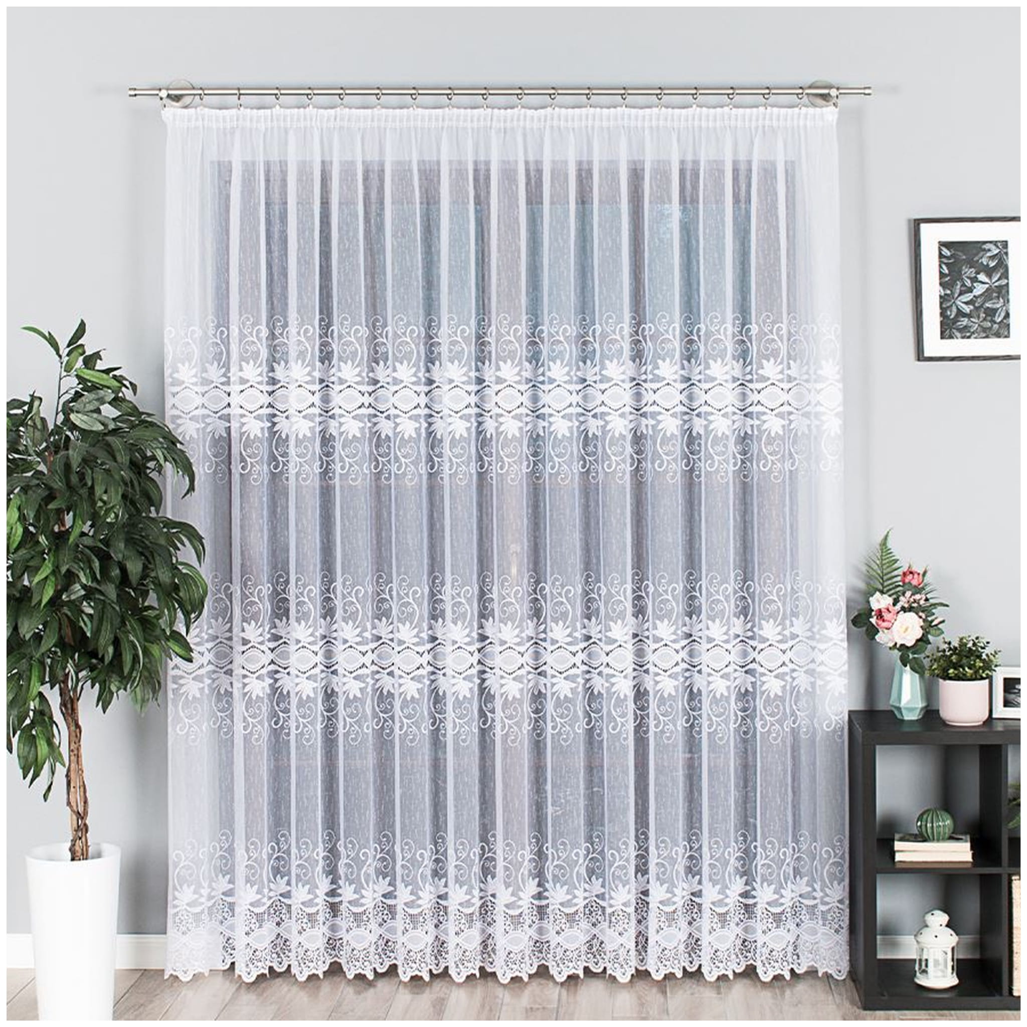Firanka Żakardowa Dluga 250cm Firany na Metry Klasyczna Firana Biała