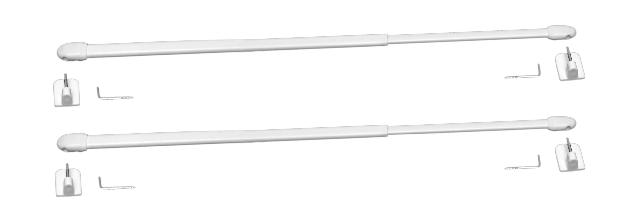• Komplet dwóch rozsuwanych mini karniszy do zazdrostek z elementami do zawieszenia