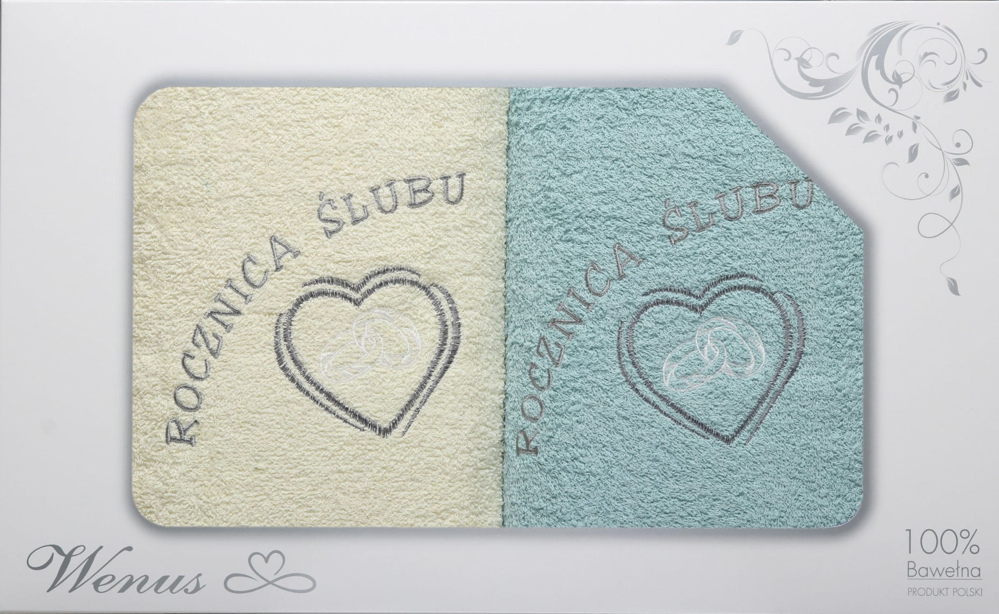 Komplet Ręczników 2szt. 70x140 Na Rocznicę Ślubu Krem+Miętowy 9437