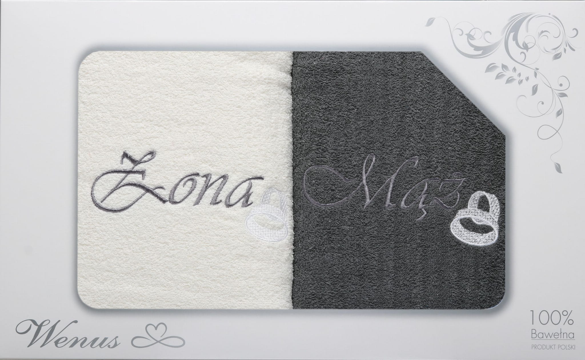 Komplet Ręczników 2szt. 70x140 Żona Mąż Ślub Rocznica Krem+Grafitowy 9423