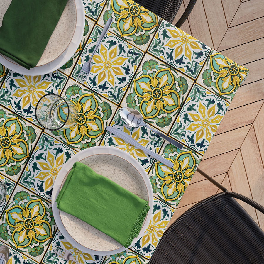 Materiał na Metry ze wzorem portugalskim. Materiał jest miękki, matowy i charakteryzuje się trwałym, jednostronnym wzorem.