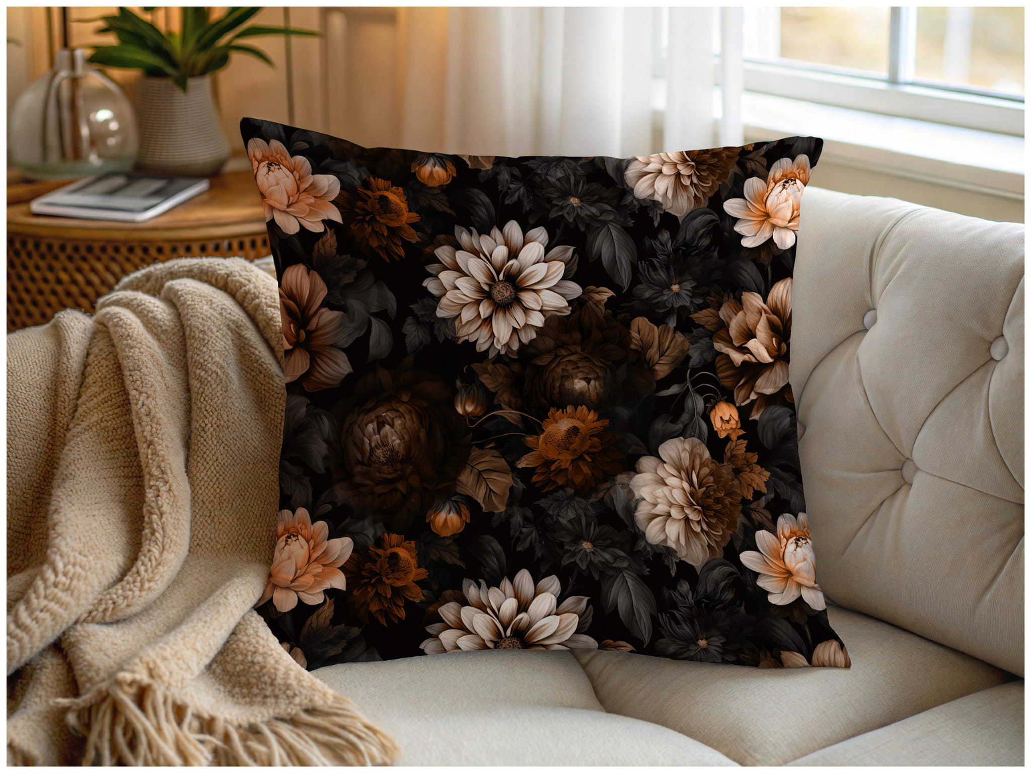 Materiał na Zasłony Bieżniki Tkanina Soft Welur Kwiaty Brąz 10856