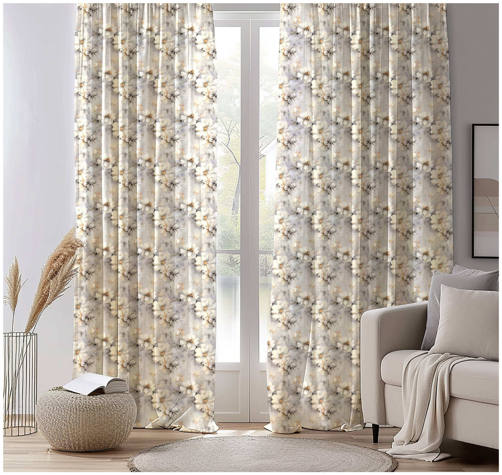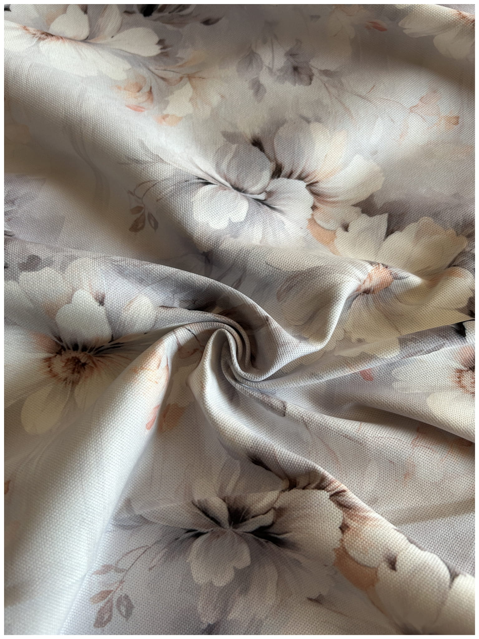 Materiał na Zasłony Bieżniki w Kwiaty Tkanina Szara Soft 10749