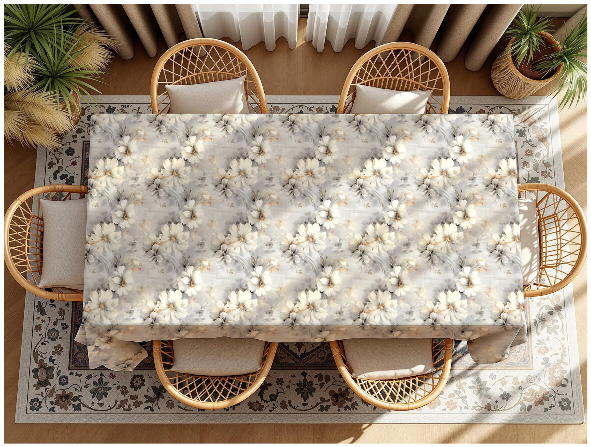 Aby dobrać idealny rozmiar obrusa zalecamy do szerokości stołu dodać 15-25cm zwisu na każdą stronę.