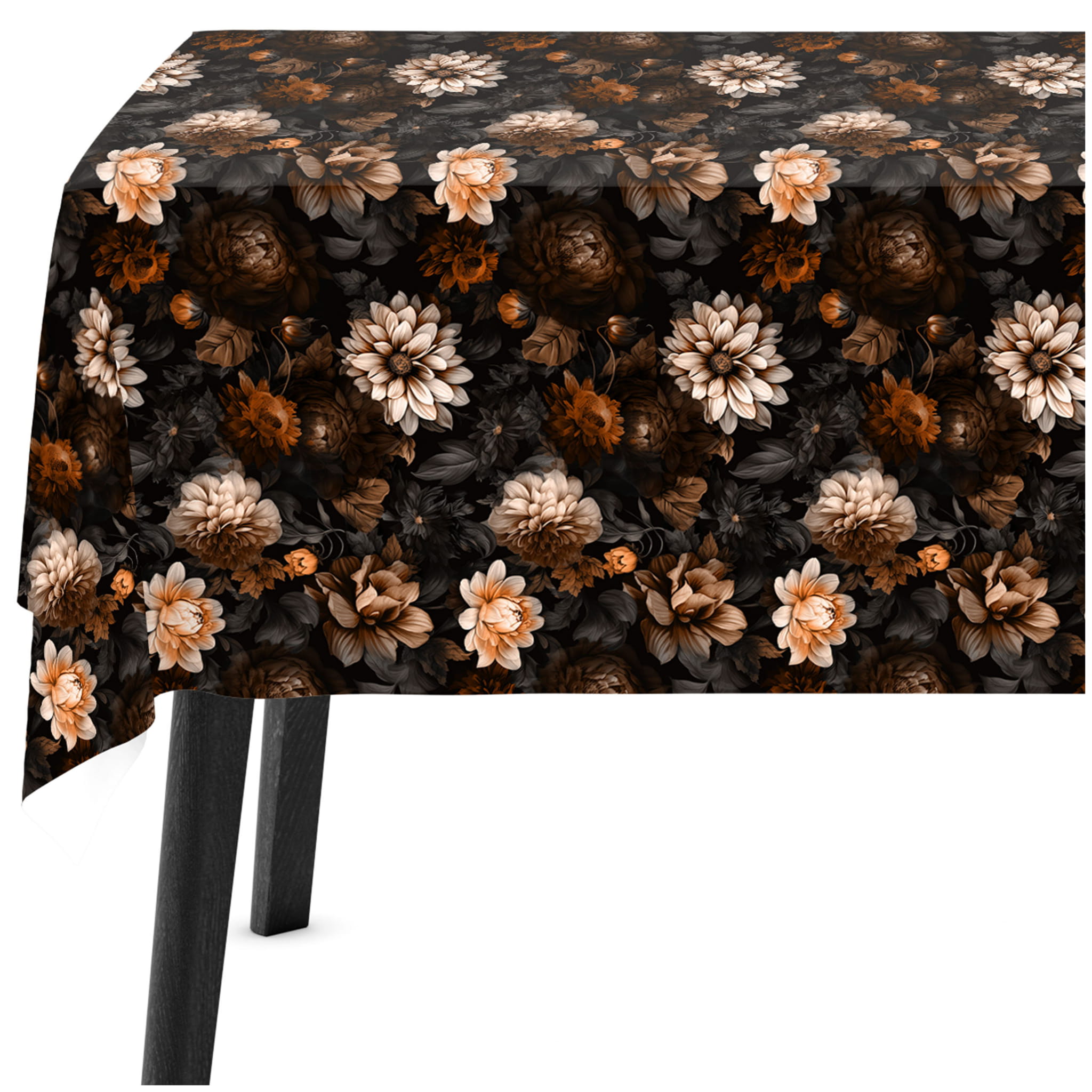 Obrus w Kwiaty na Stół 140x220 Obrus Welurowy Kwiaty Brąz 10871