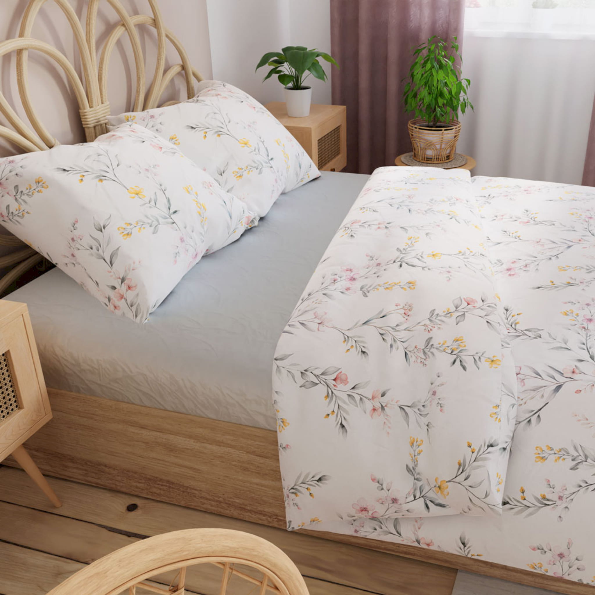 Pościel 160x200 Pościel Bawełniana 100% Satyna Bawełniana Komplet Kwiaty