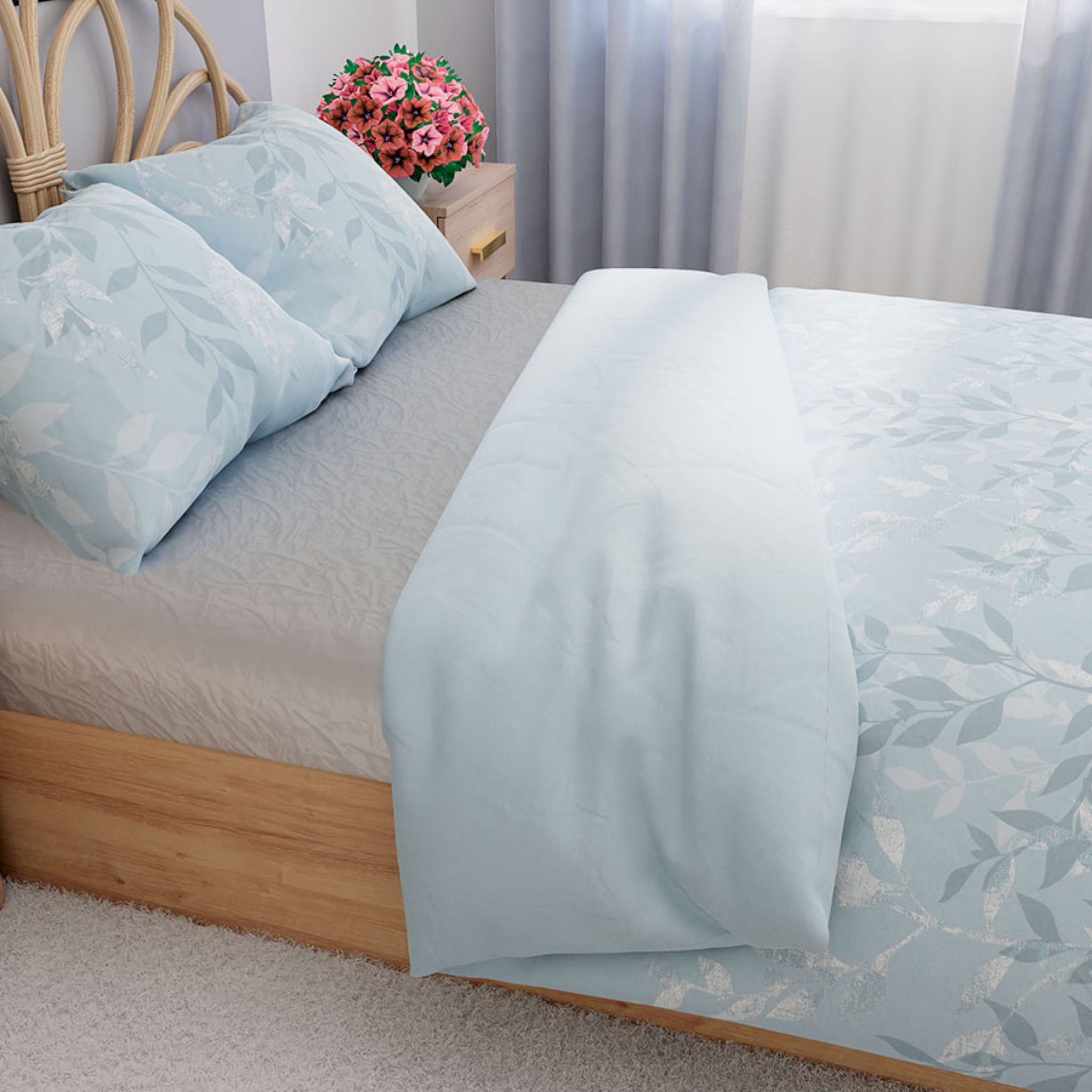 W skład kompletu wchodzą: dwie poszewki na poduszkę 70x80cm i poszwa na kołdrę 220x200
