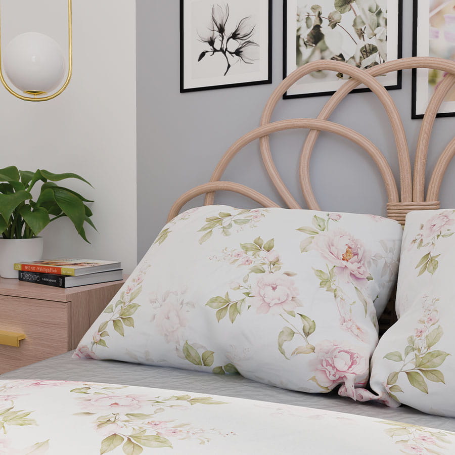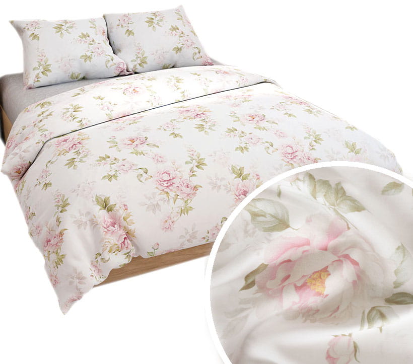 Komplet pościeli wykonany z wysokiej jakości bawełny o splocie satynowym.