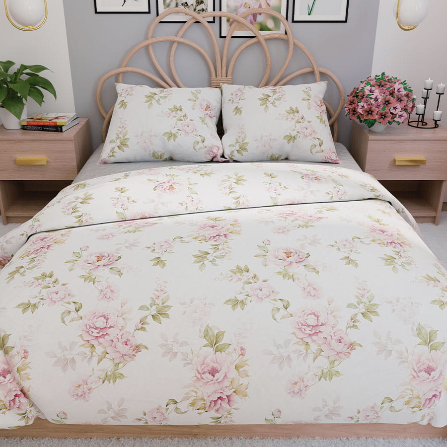 Pościel 220x200 Bawełna Satynowa Komplet Pościeli 100% Bawełna Kwiaty