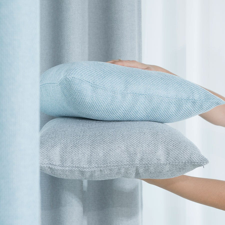 Poszewki Dekoracyjne wykonane z miękkiej tkaniny z wyrazistym, grubym splotem.