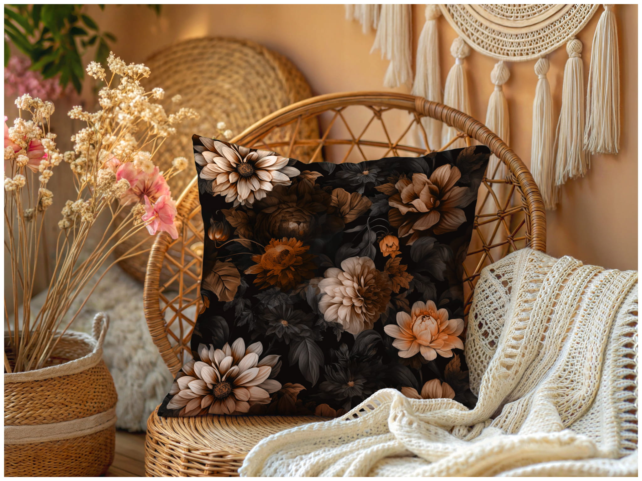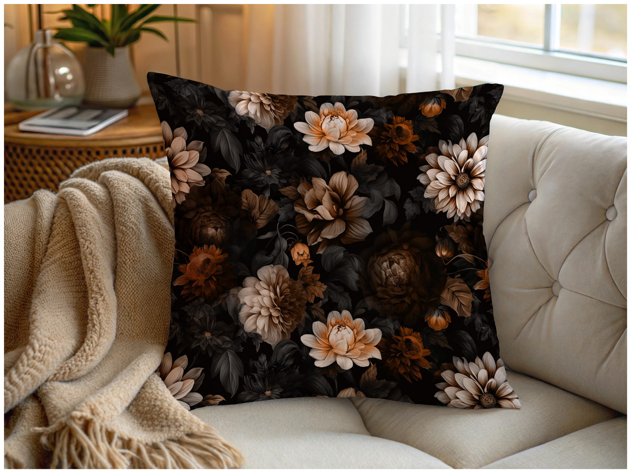 Poszewka Dekoracyjna 40x40 Poszewki na Poduszki Kwiaty Brąz 10869