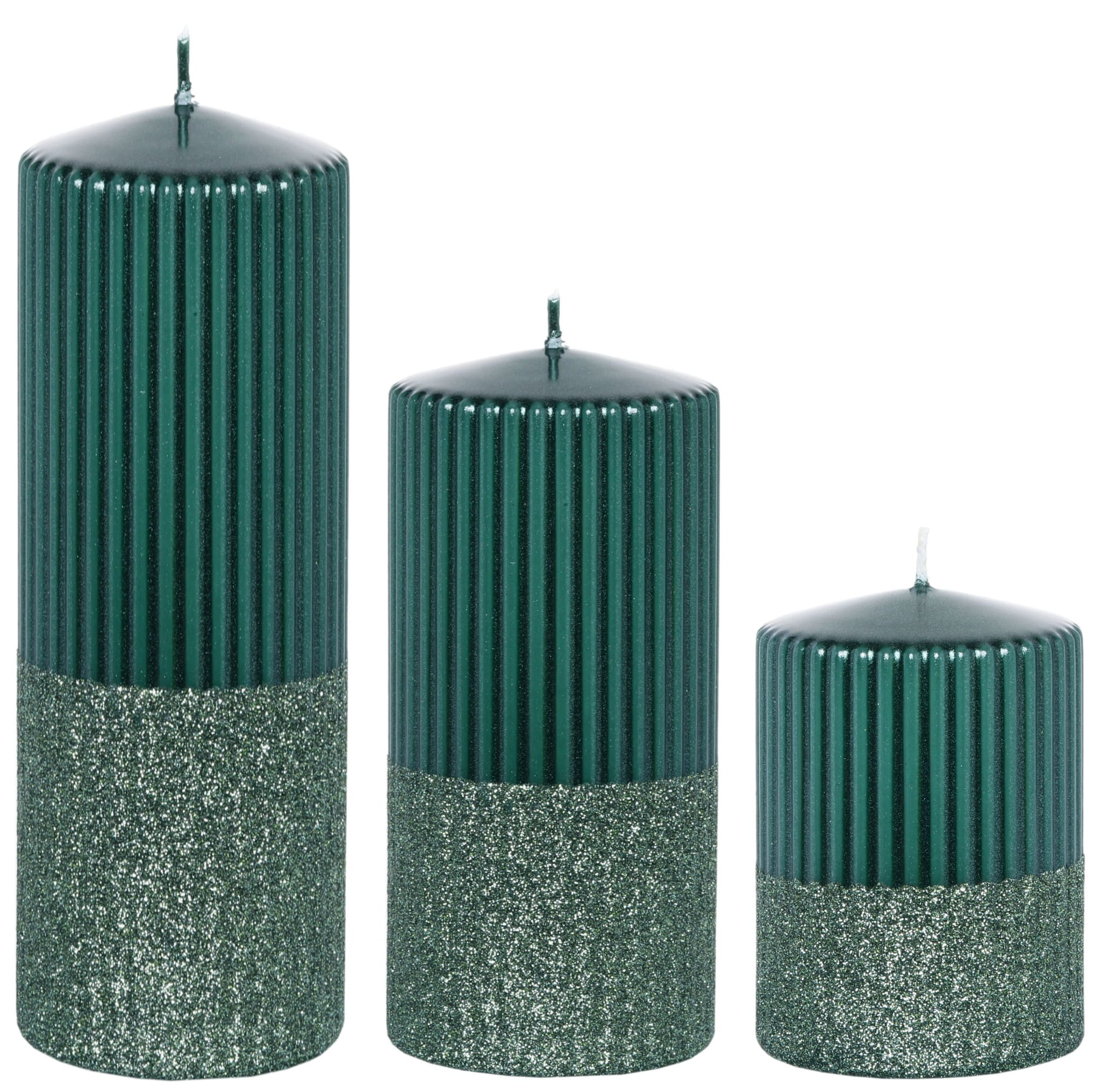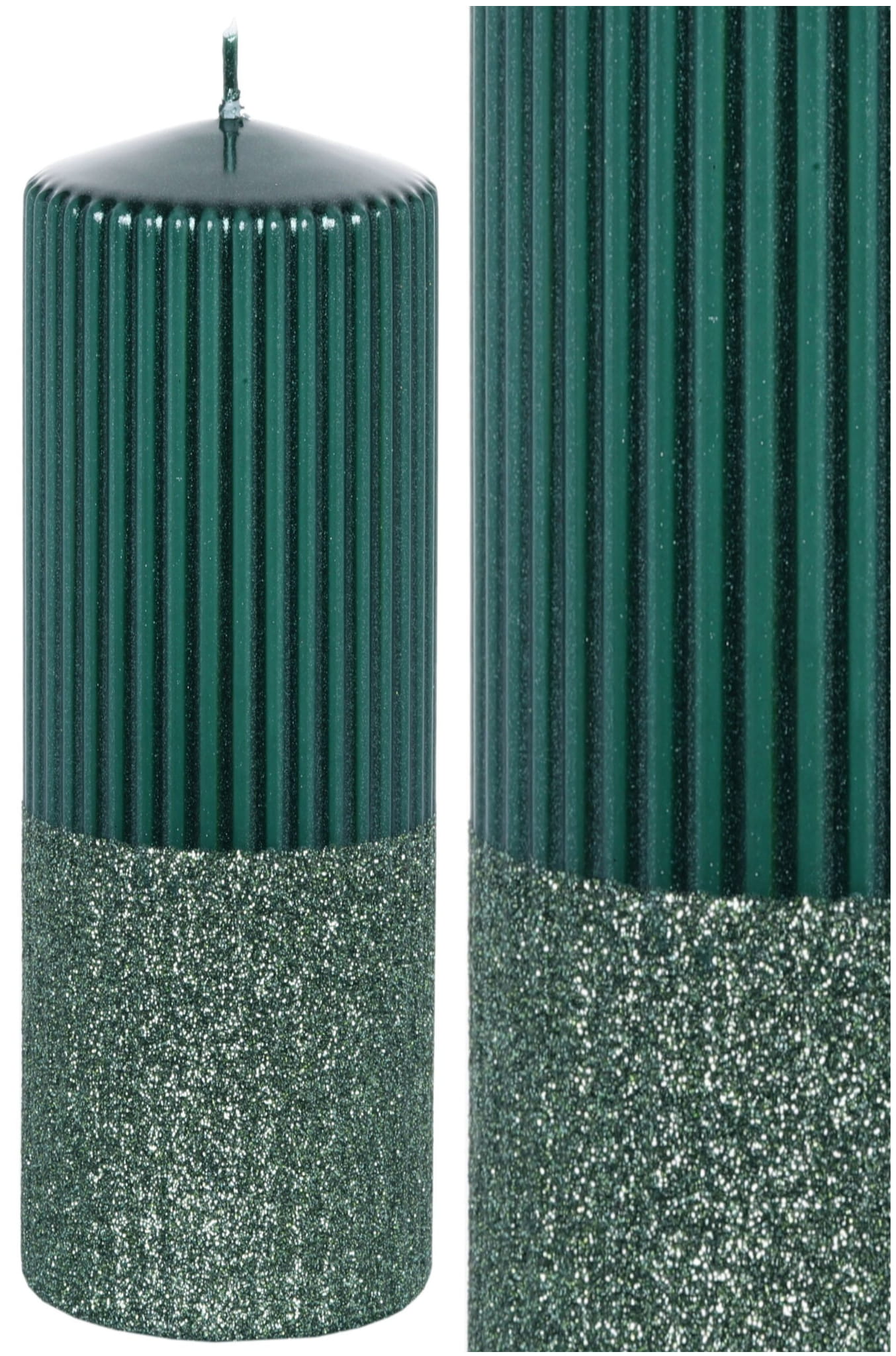 Świeca Świąteczna 20cm Świeca Dekoracyjna Zielona z Brokatem