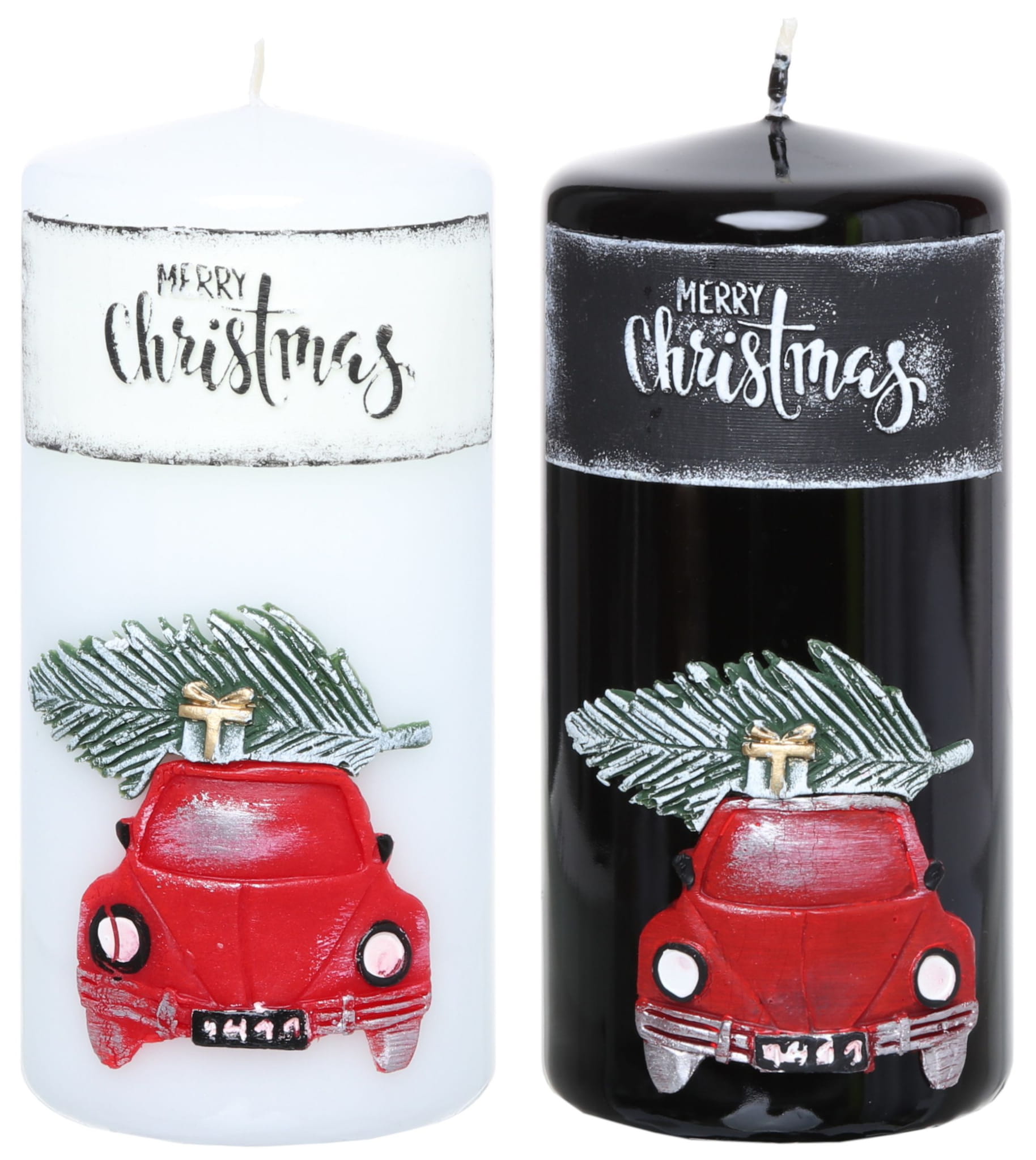 Świeczka Świąteczna Biała z Samochodem Świeczka Dekoracyjna Boże Narodzenie