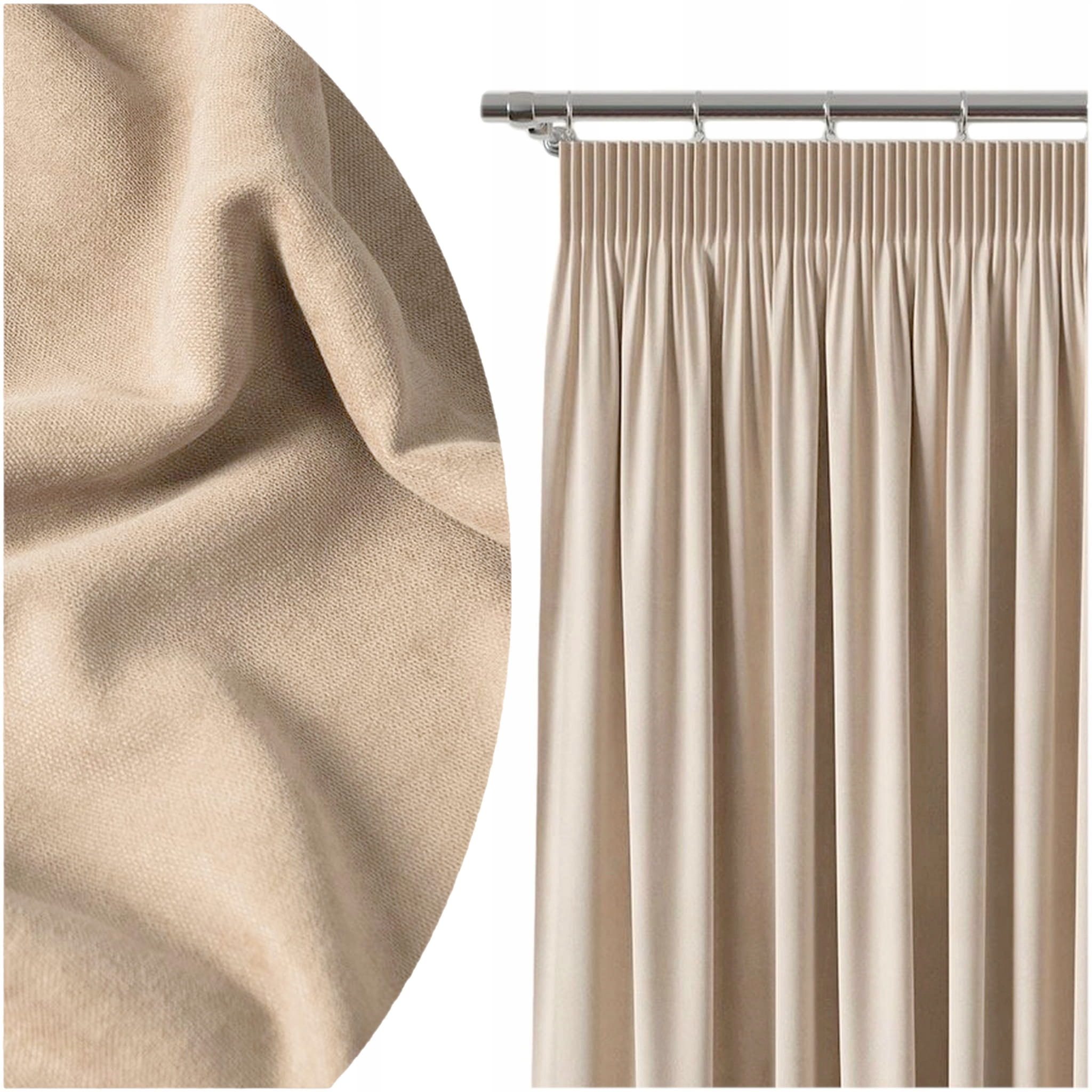 Szeroka Zasłona Gotowa na Taśmie 280x250 Bezpłatne Skrócenie lub Wydłużenie Zasłony Gładkie Piaskowy Beż 10573