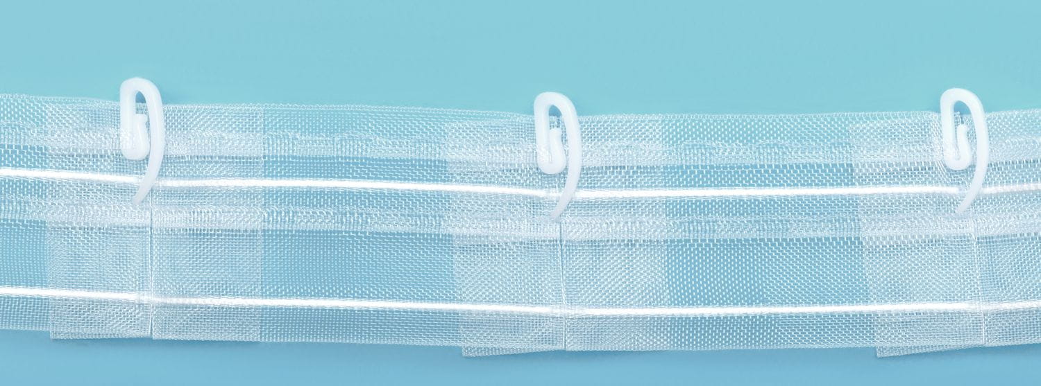 Wykonanie taśmy marszczącej z żyłki (taśma żyłkowa) zapewnia jej transparentność i sprawia, że doskonale nadaje się do szycia do firan, zasłon i lambrekinów.