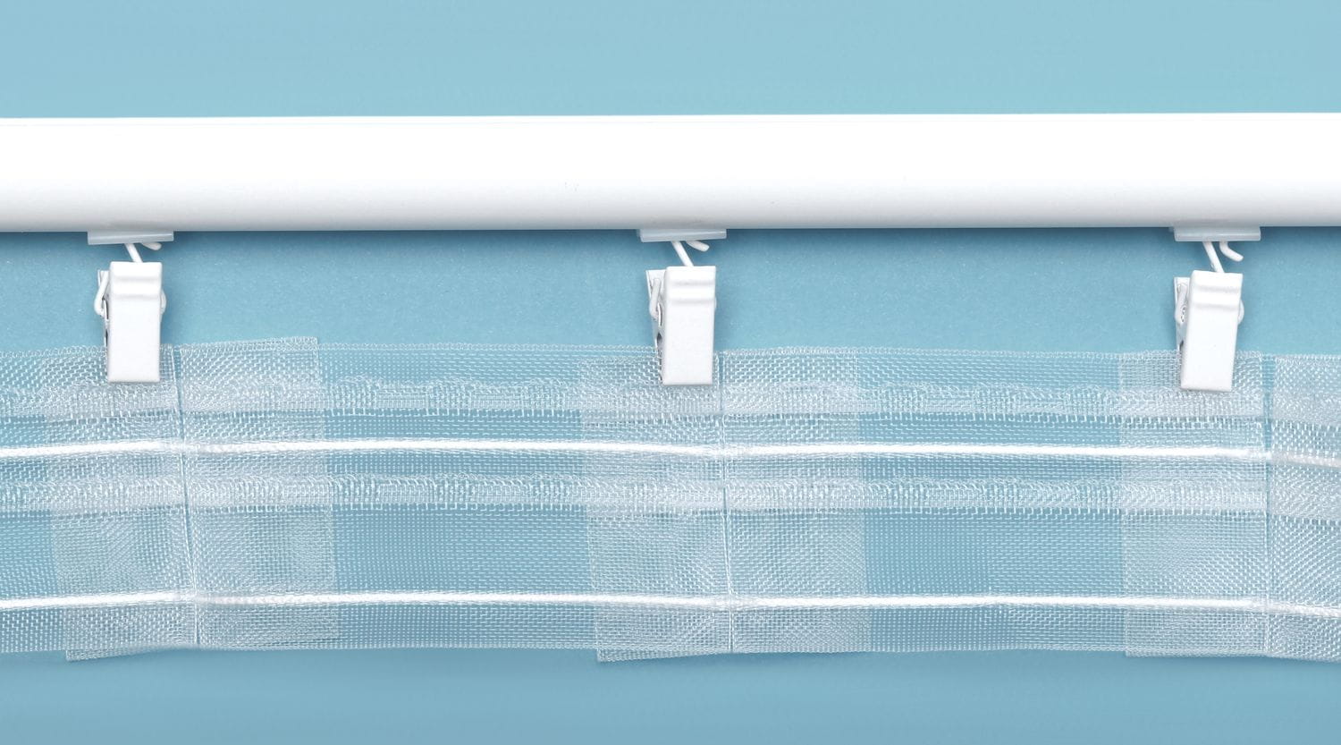 Taśma ma wykonane specjalne szlufki, dzięki czemu można mocować ją do karnisza za pomocą żabek, agrafek francuskich, agrafek i haczyków na ślizgach, rolkach lub mocowanych do kółek.