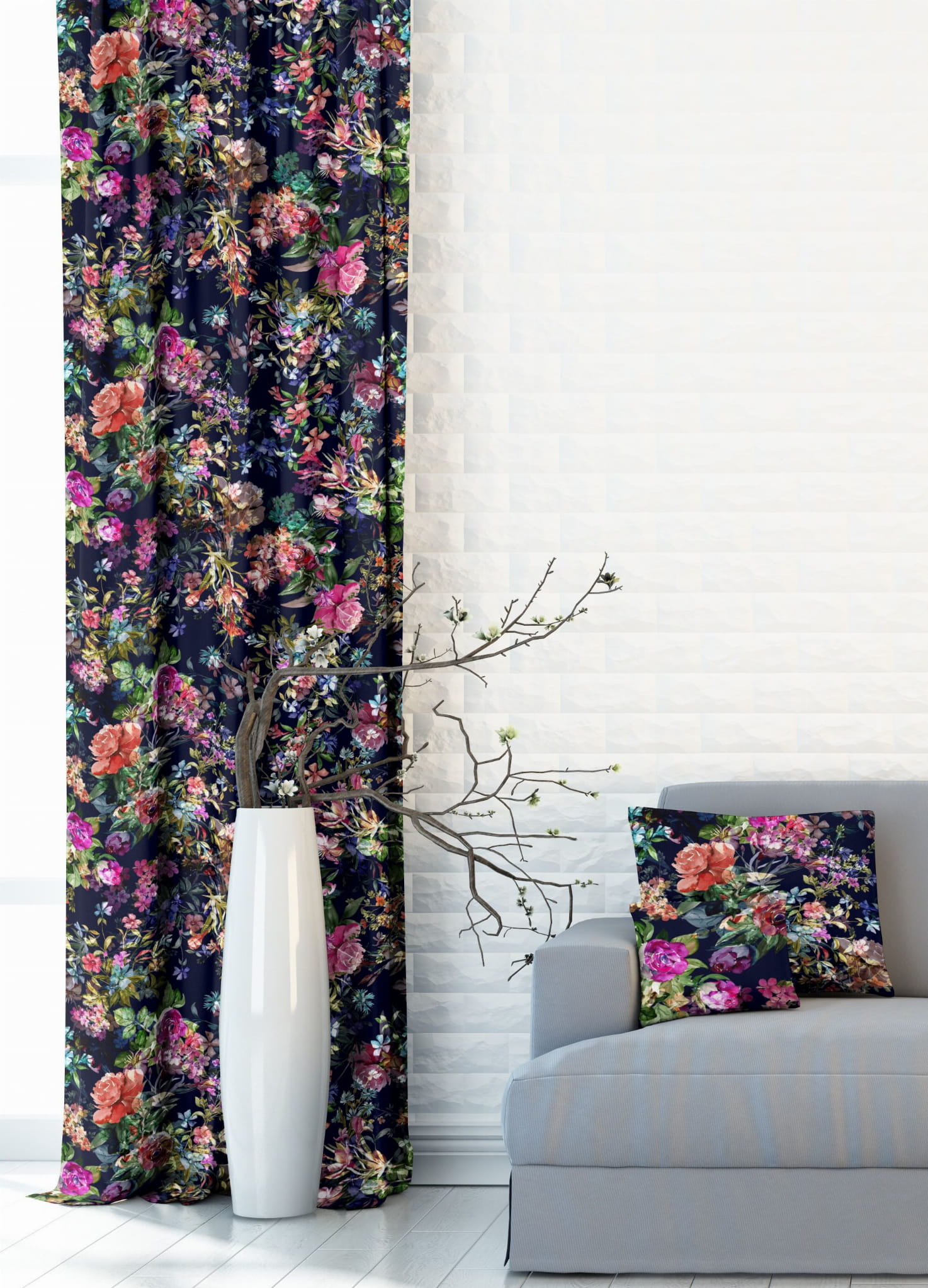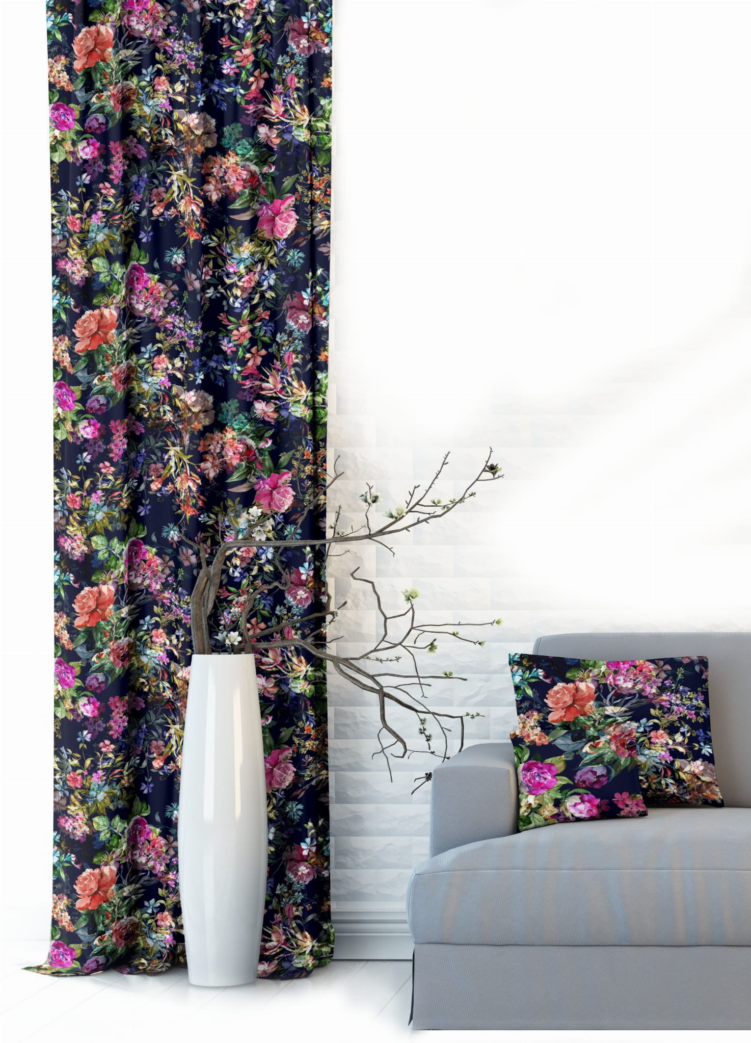 Piękna tkanina zasłonowa w kwiaty. Materiał jest średniej grubości z jednostronnym nadrukiem. Bardzo dobrze się układa, idealnie sprawdzi się nie tylko na zasłony, ale również na poszewki, bieżniki, podpięcia i obrusy. Cena dotyczy 1m wysokości tkaniny o szerokości 150 cm.