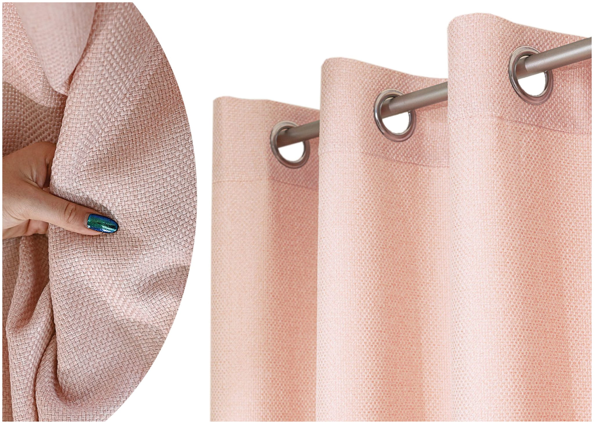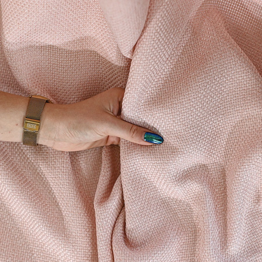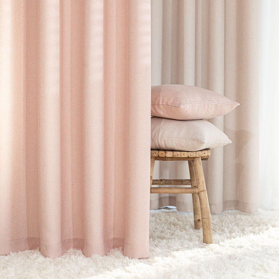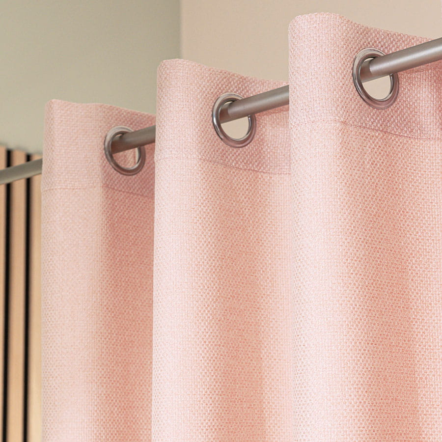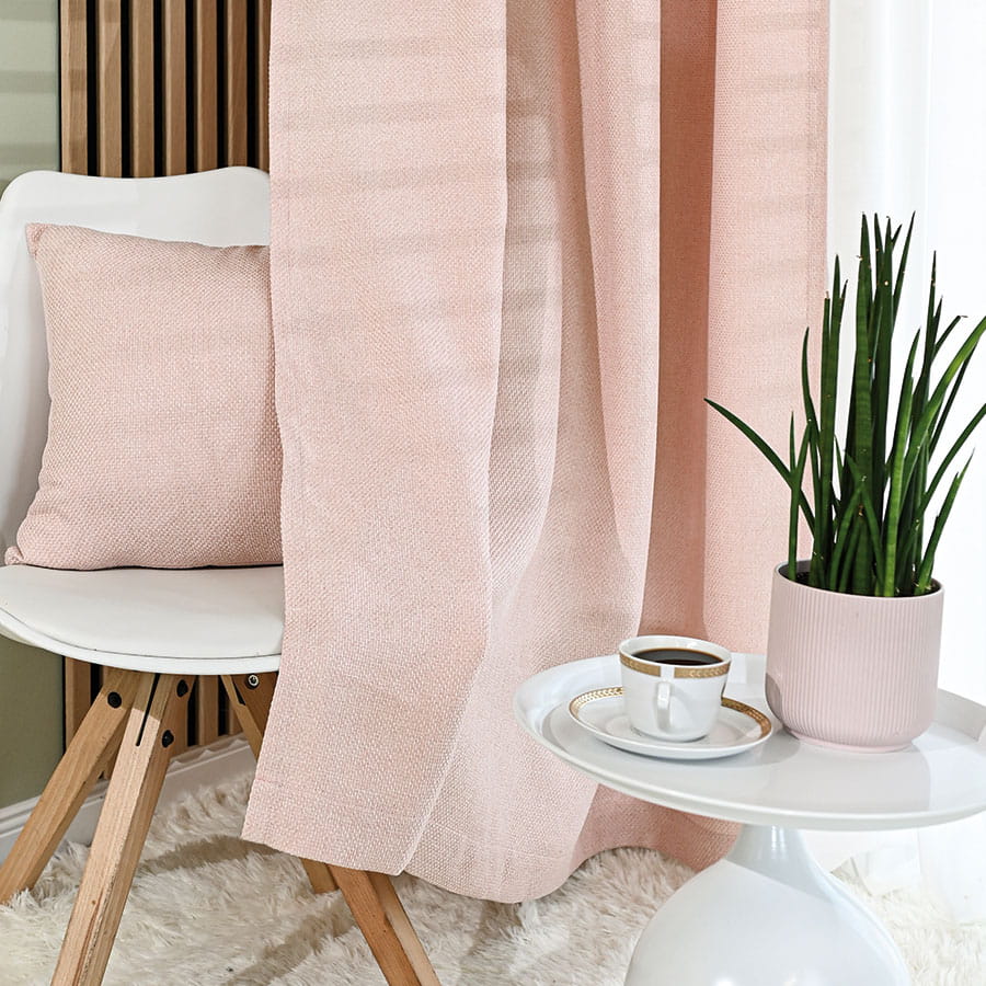 Zasłona wykonana z miękkiej tkaniny z wyrazistym, grubym splotem. Stonowana, pastelowa kolorystyka zasłon dodaje wnętrzu spokoju i przytulności.