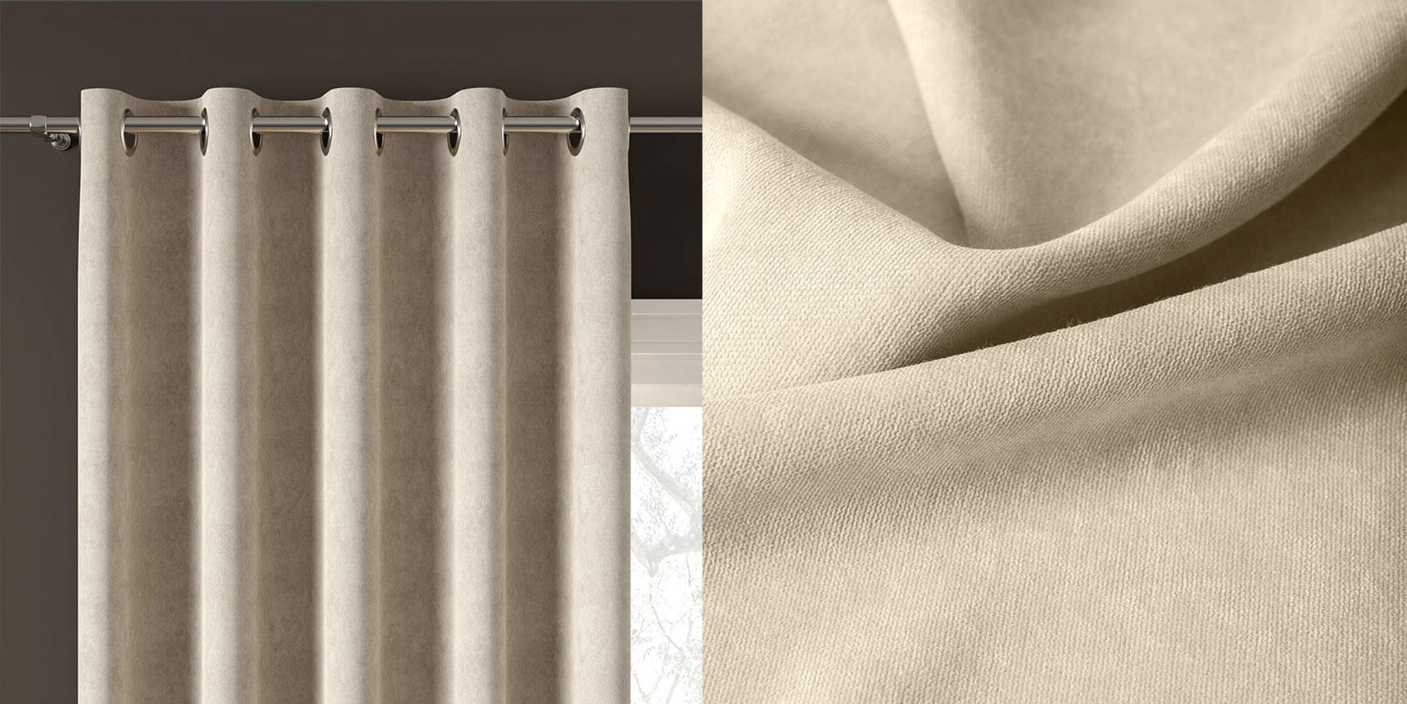 Zasłona Gotowa na Przelotkach 140x250 Zasłony Welur na Kółkach Gładkie Beż 9930