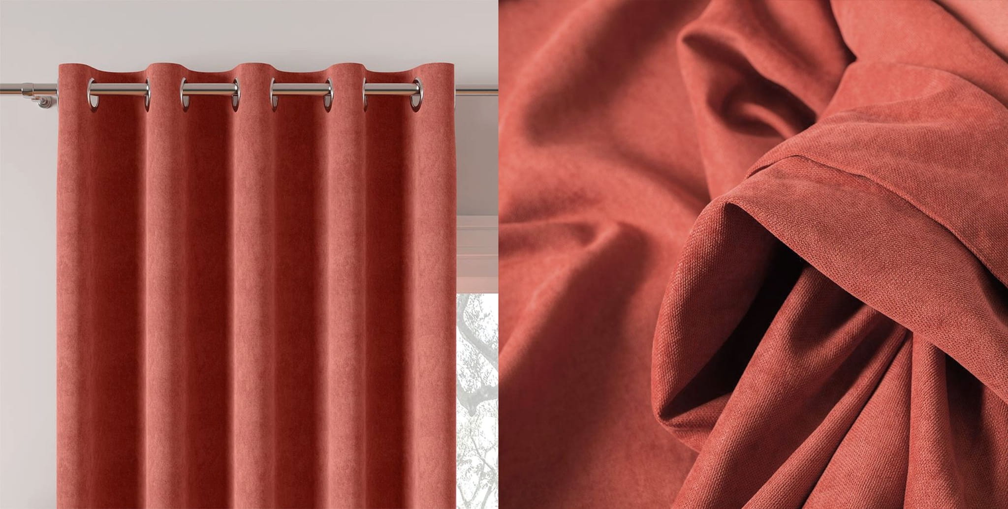 Zasłona Gotowa na Przelotkach 140x250 Zasłony Welur na Kółkach Gładkie Cegła 9933