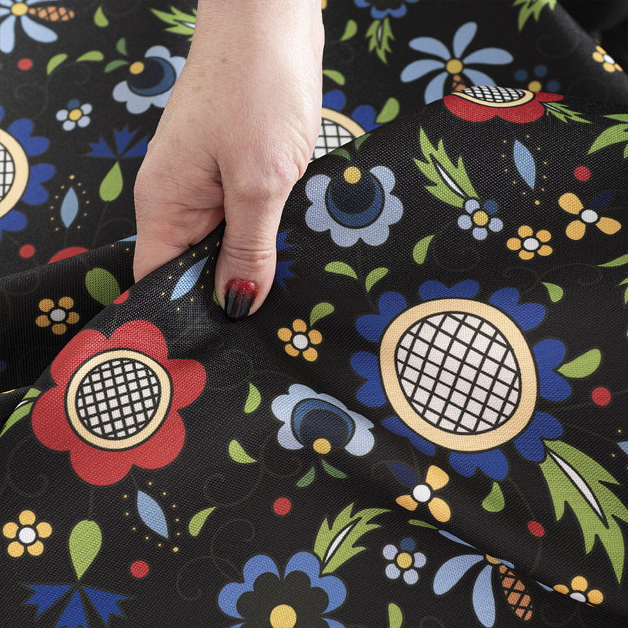 Dół i boki zostały starannie obszyte nićmi dopasowanymi kolorystycznie do tkaniny.
