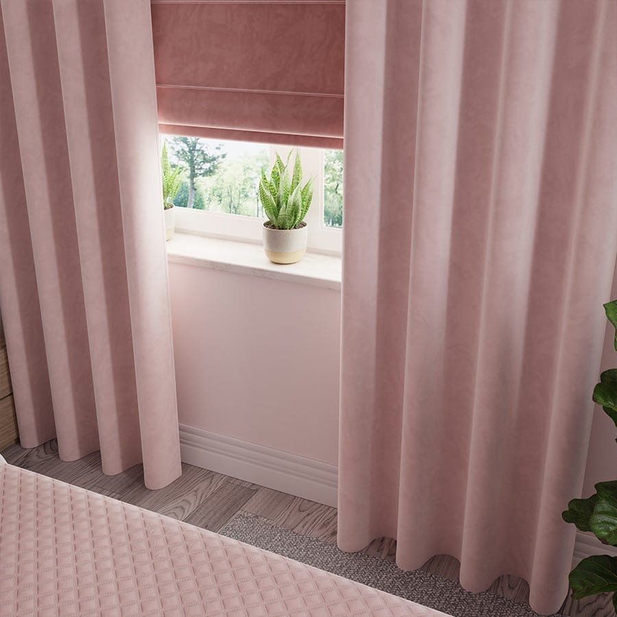 Zasłona wykonana z miękkiej, lejącej tkaniny welurowej z delikatnym meszkiem.