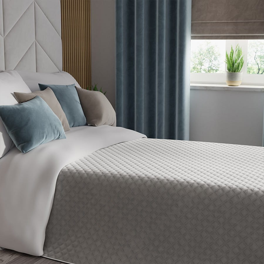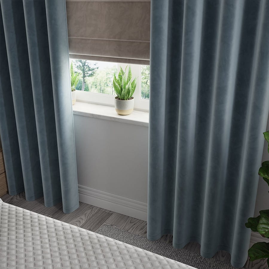 Zasłona wykonana z miękkiej, lejącej tkaniny welurowej z delikatnym meszkiem.